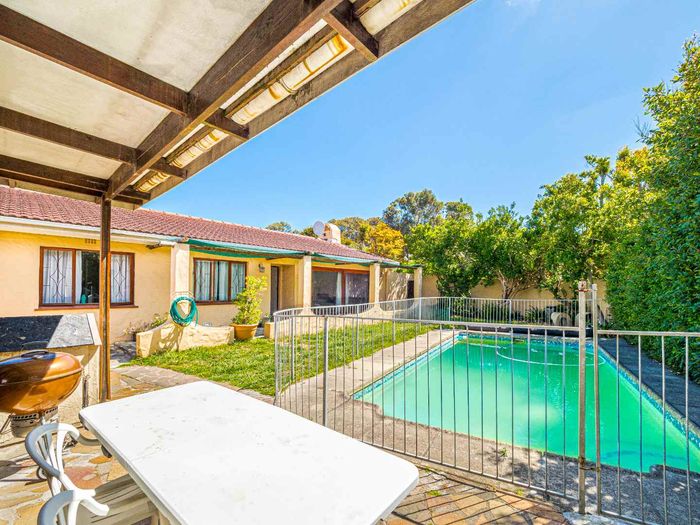 Sunlit family living with effortless indoor–outdoor flow in The Vines, Constantia, close to schools and shops; fenced gunite pool, study and flexible floorplan—four bedrooms, two baths, single garage.