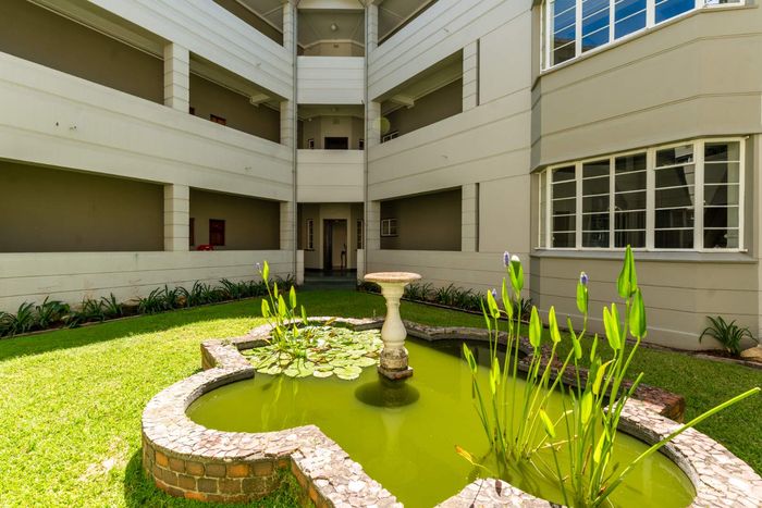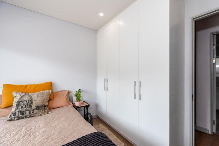 Peaceful Wynberg Upper living with leafy communal gardens and elevator access; north-facing balcony, two bedrooms and one bathroom, plus garage and extra parking — ideal to personalise.