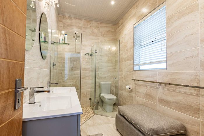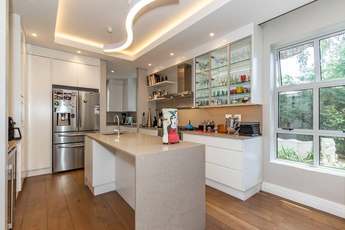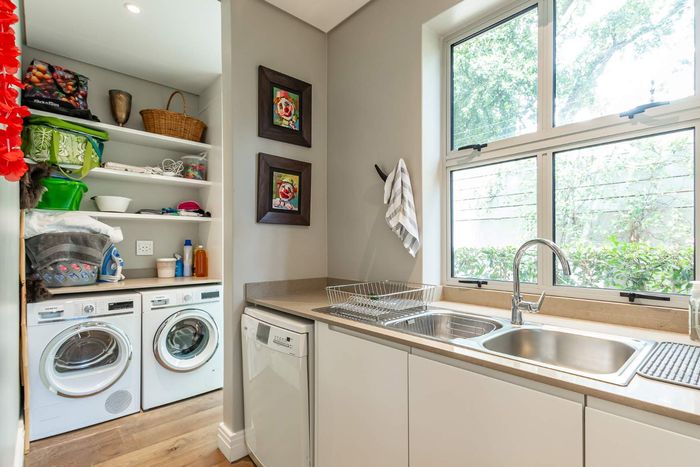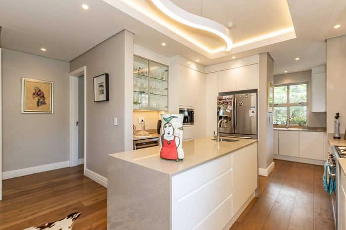 Entertain effortlessly in a private manned estate near Newlands Cricket and top schools, with a cooled wine cellar; three en-suite bedrooms and double garage.