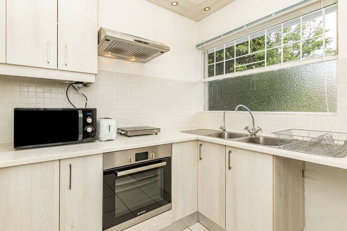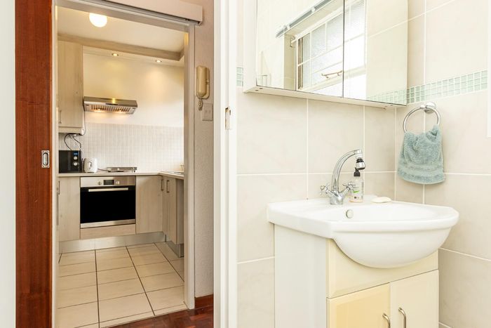 Effortless campus-edge living in Rondebosch, just minutes from UCT and village shops, north-facing apartment with a modern Caesarstone kitchen, sunny balcony with partial mountain views, one bed, garage.