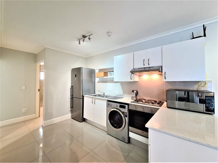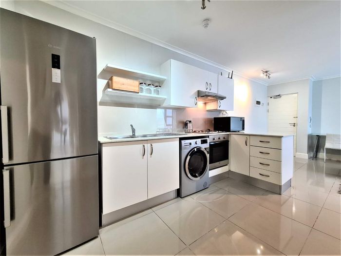 Live steps from the V&A Waterfront and Sea Point Promenade in Green Point, in a turnkey, fully furnished ground-floor apartment with private patio and communal braai. One bedroom, one bath.