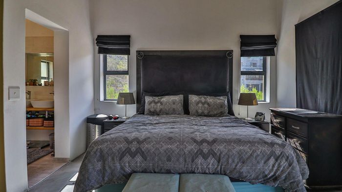 Relaxed Montagu living with sweeping mountain vistas and tranquil garden; open-plan lounge with fireplace flows to patio for entertaining. Two en-suite bedrooms, solar geyser and double garage.