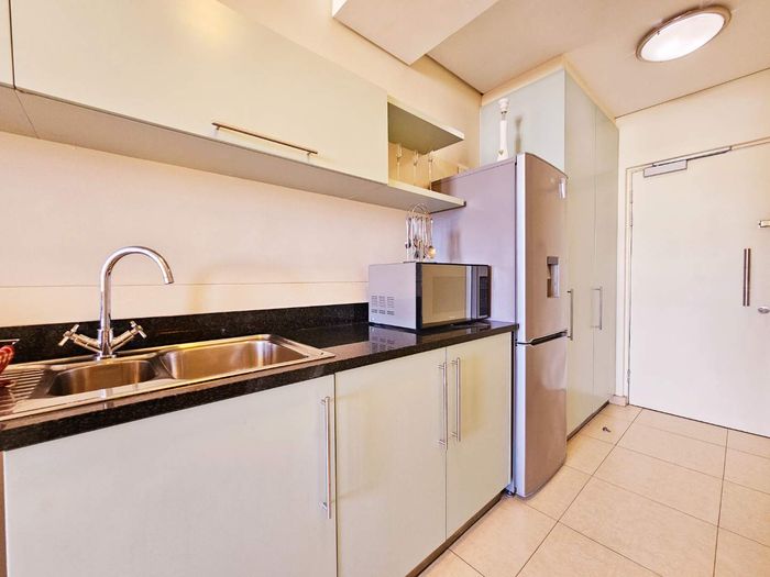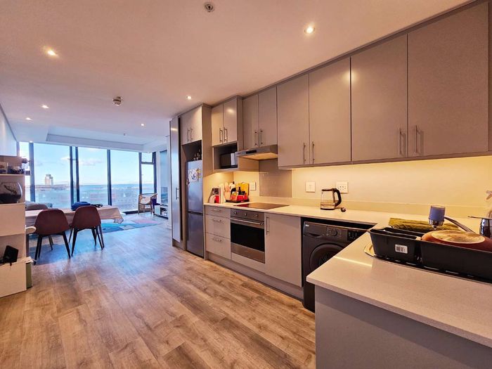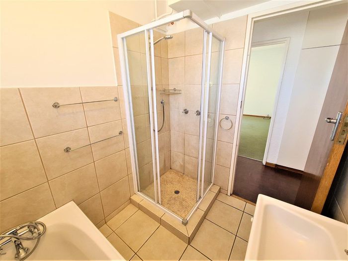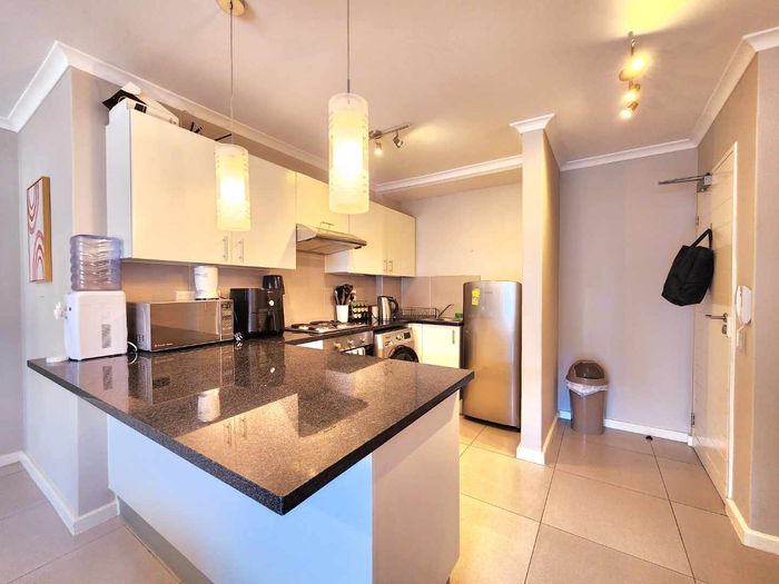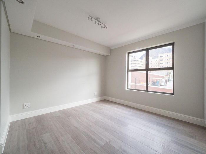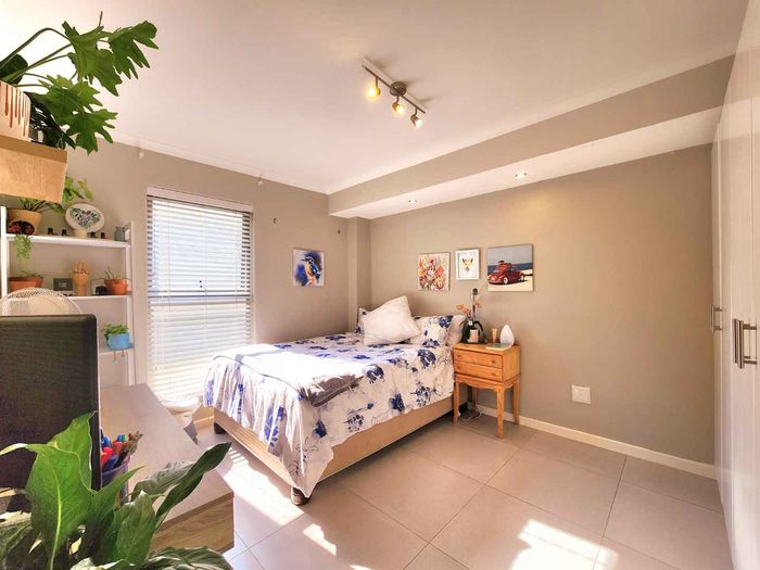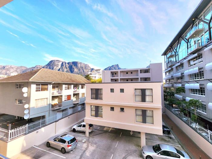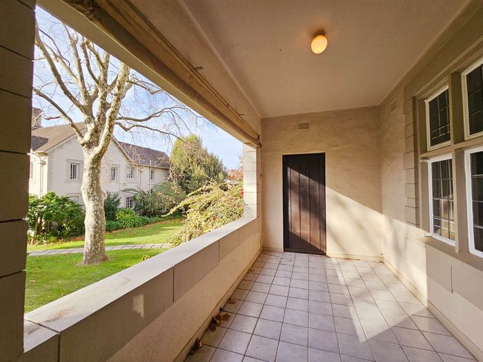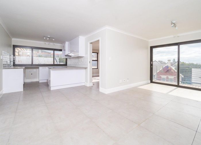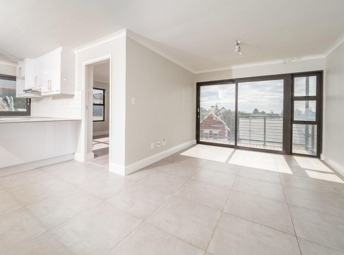 Sunlit second-floor apartment in Observatory, steps from cafés, UCT and Groote Schuur — enjoy a mountain-view balcony, secure 24-hour building with gym; two bedrooms, two baths, one parking.