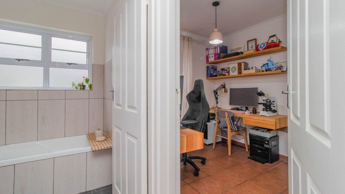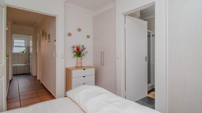 Peaceful cul-de-sac living with a private garden perfect for braais; end-unit double-storey apartment offers a spiral staircase, separate scullery and single garage — one bedroom, one bath.