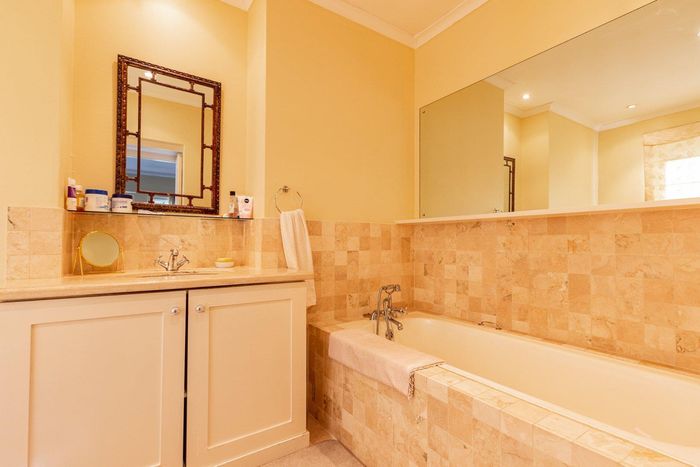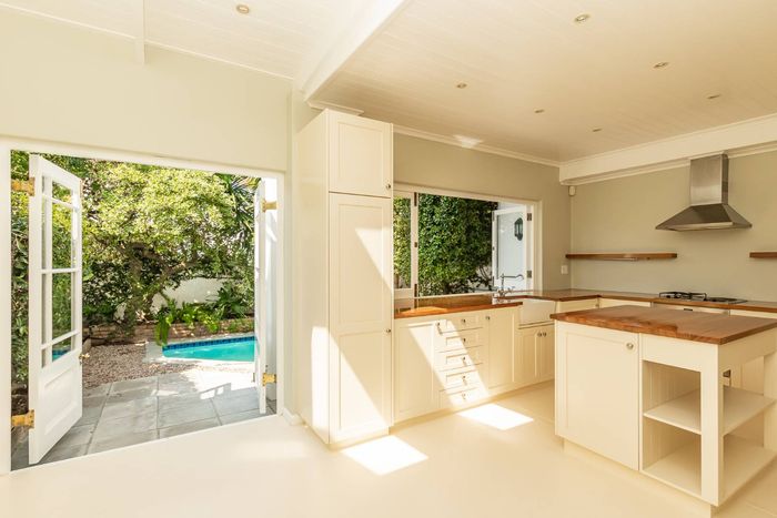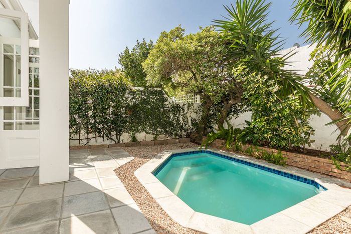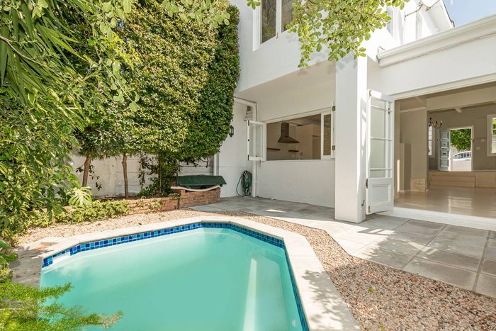 Harfield Village lifestyle, moments from cafés and Cavendish Square, with a sunlit north-facing lounge, entertainment patio and sparkling pool — three bedrooms and parking for three.