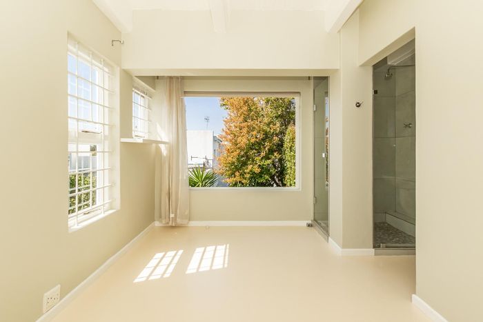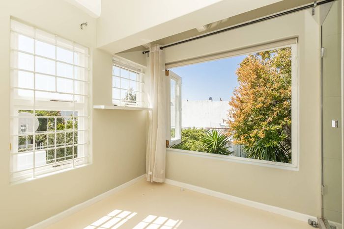 Enjoy vibrant city living steps from Kloof Street's cafés and boutiques in this renovated Art Deco corner flat featuring parquet floors, a sunny alcove, modern kitchen, two beds, two baths.