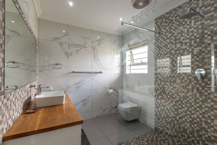 Entertain effortlessly and relax in a peaceful, well-connected suburban retreat, featuring a solar-heated pool, expansive entertainment wing, separate one-bedroom flatlet, and four bedrooms, three bathrooms.