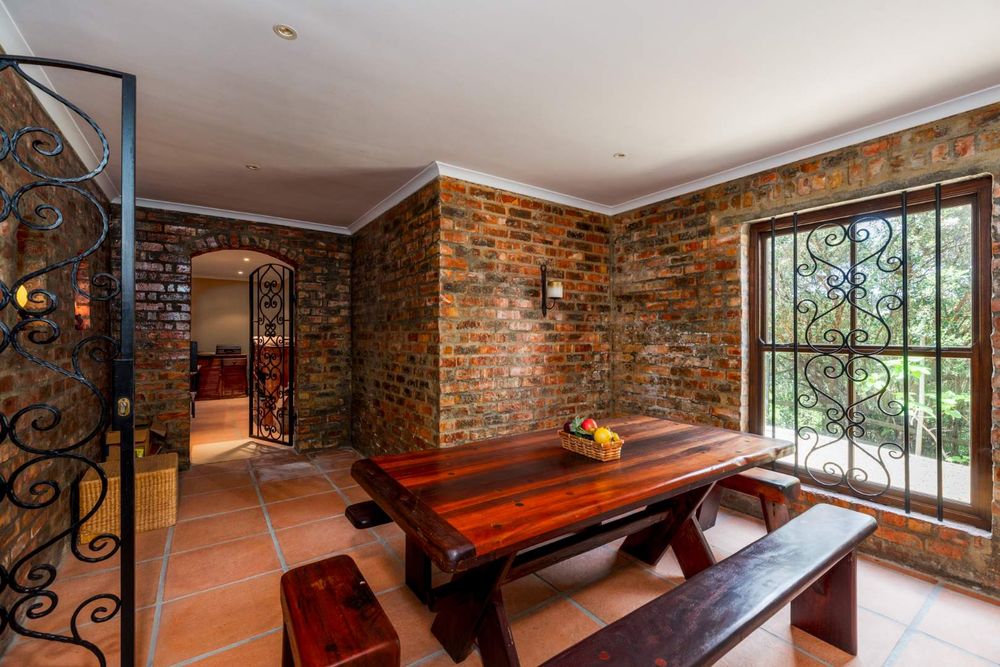The second lounge includes another large fireplace and designed in an open-plan style, flows effortlessly into a farmhouse-inspired kitchen, ideal for culinary enthusiasts. Eat in kitchen. This delightful area also opens to a built-in braai and another patio, perfect for alfresco dining and gatherings.