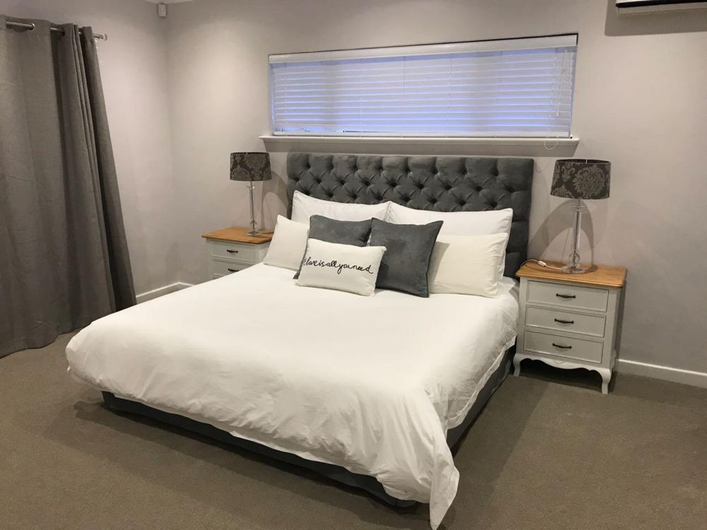 Downstairs Bedroom: Spacious bedroom with en-suite bathroom, double shower and German style waterfall showerheads; opening onto a patio with spectacular Table Mountain views. Air conditioning adds to comfort.