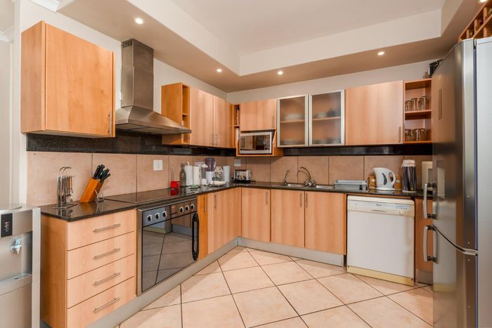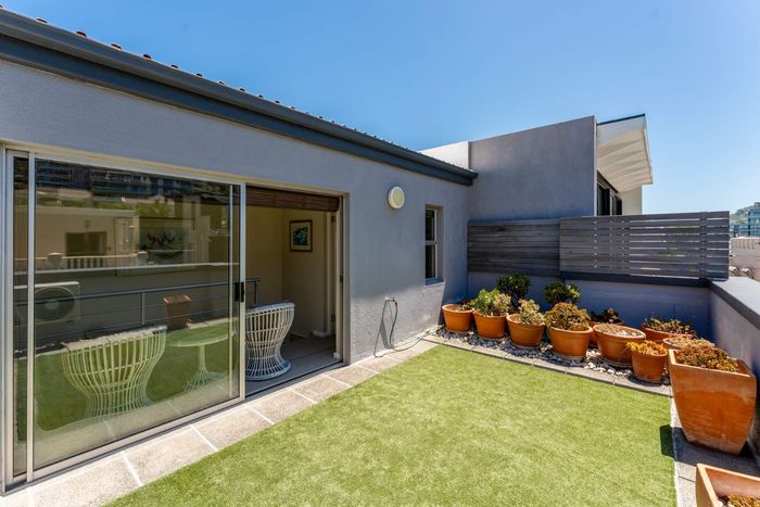 Enjoy Cape Town city-centre living steps from the V&A Waterfront and Bree Street; fully furnished penthouse with floor-to-ceiling harbor views, rooftop pool and bar, three beds, three baths, two garages.