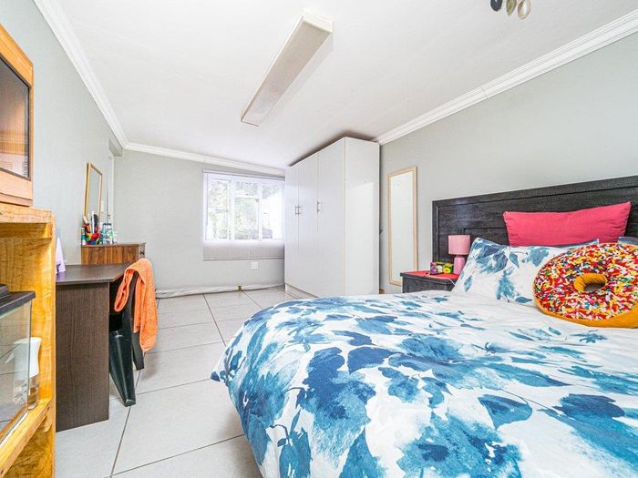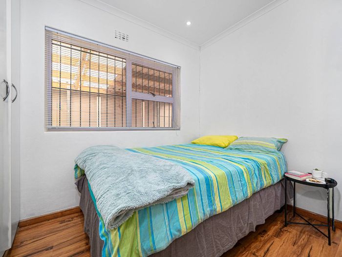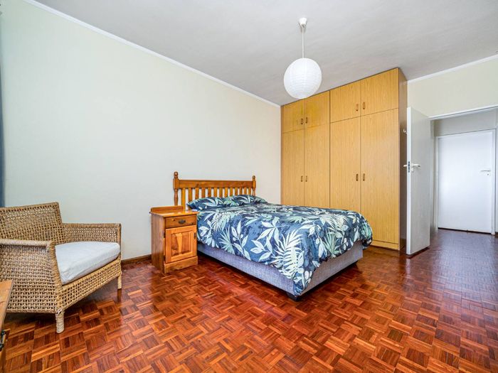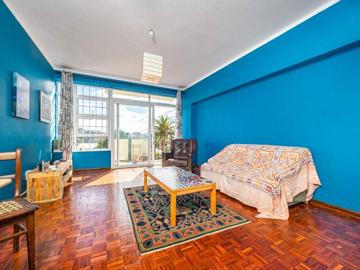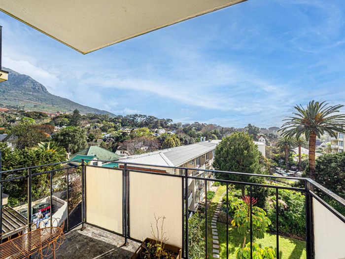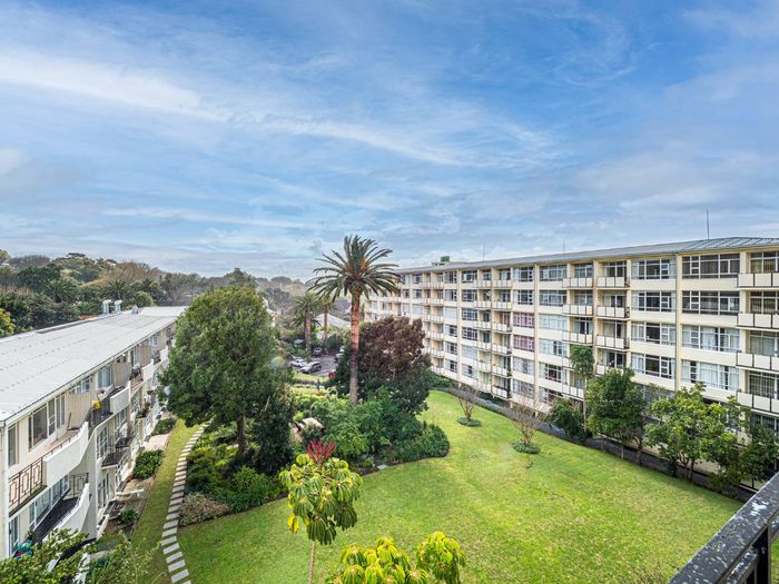 Sunny north-facing apartment offering garden-set tranquillity steps from UCT and Rondebosch’s cafes and theatre, with balcony mountain views, two bedrooms, bathroom and a lock-up garage.