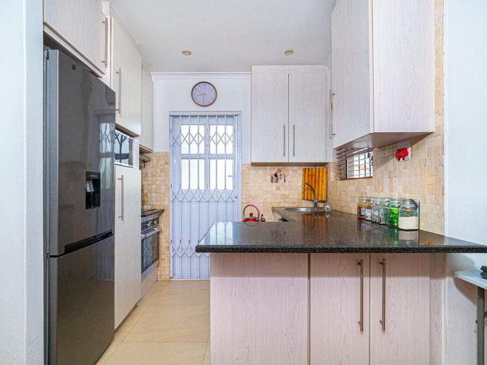 Relaxed lakeside living in Zeekoevlei's secure mini-estate, open-plan lounge and fitted kitchen ideal for entertaining, indoor braai, three bedrooms, one bathroom and tandem garage with backyard access.