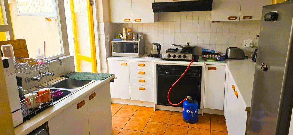 Step inside to discover a functional and stylish kitchen with ample cupboard space, a dedicated connection for a front-loader washing machine, space for a single-door fridge, and additional storage to keep everything neatly tucked away.