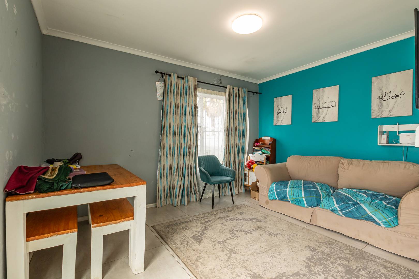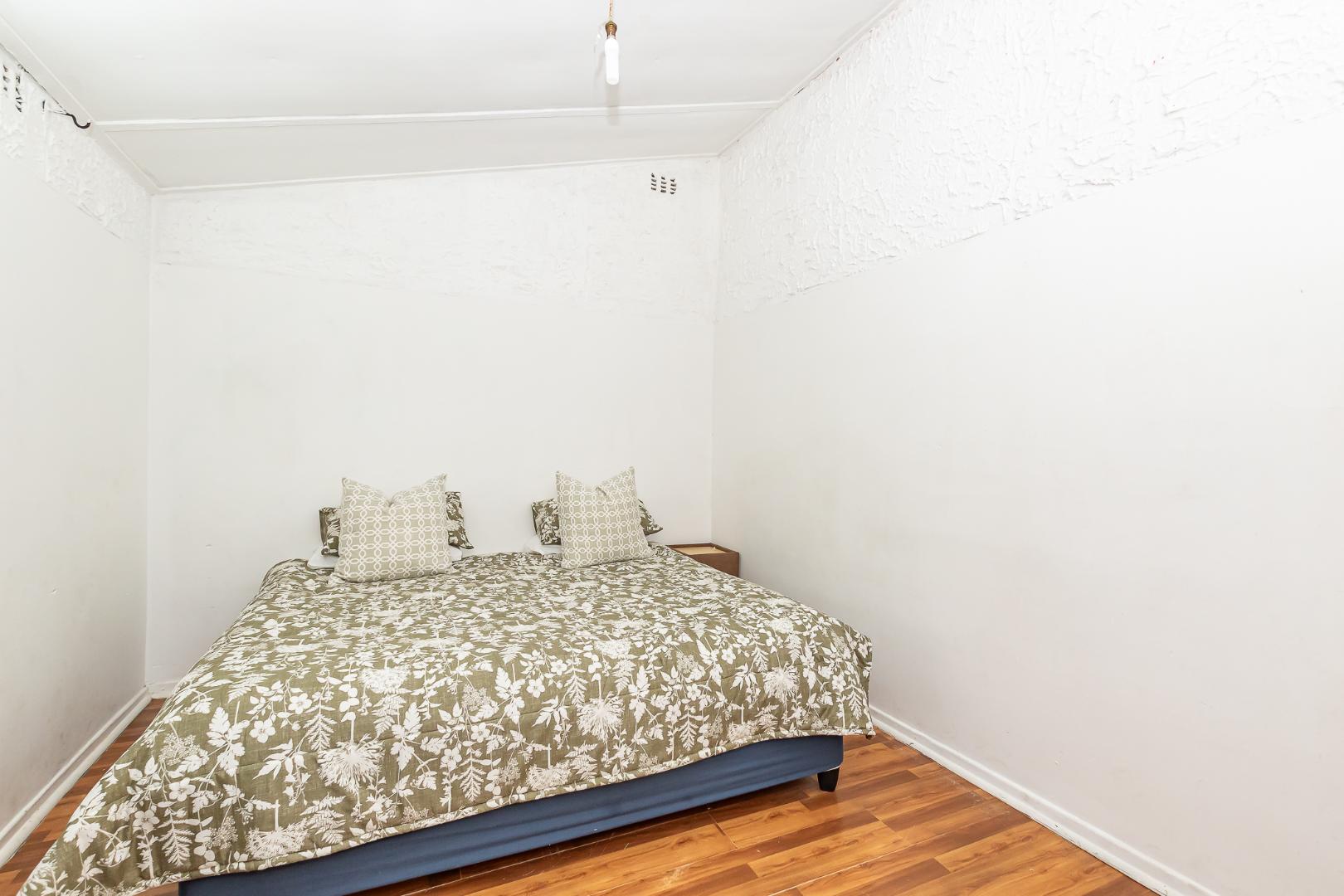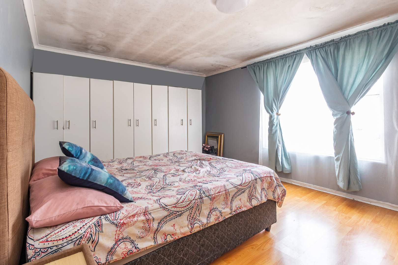 Upon entering, you are welcomed into a lounge and dining area. The spacious main bedroom offers great potential for the installation of built-in cupboards, while the second bedroom is currently configured as a double room