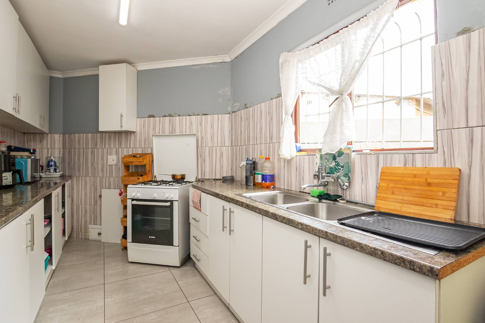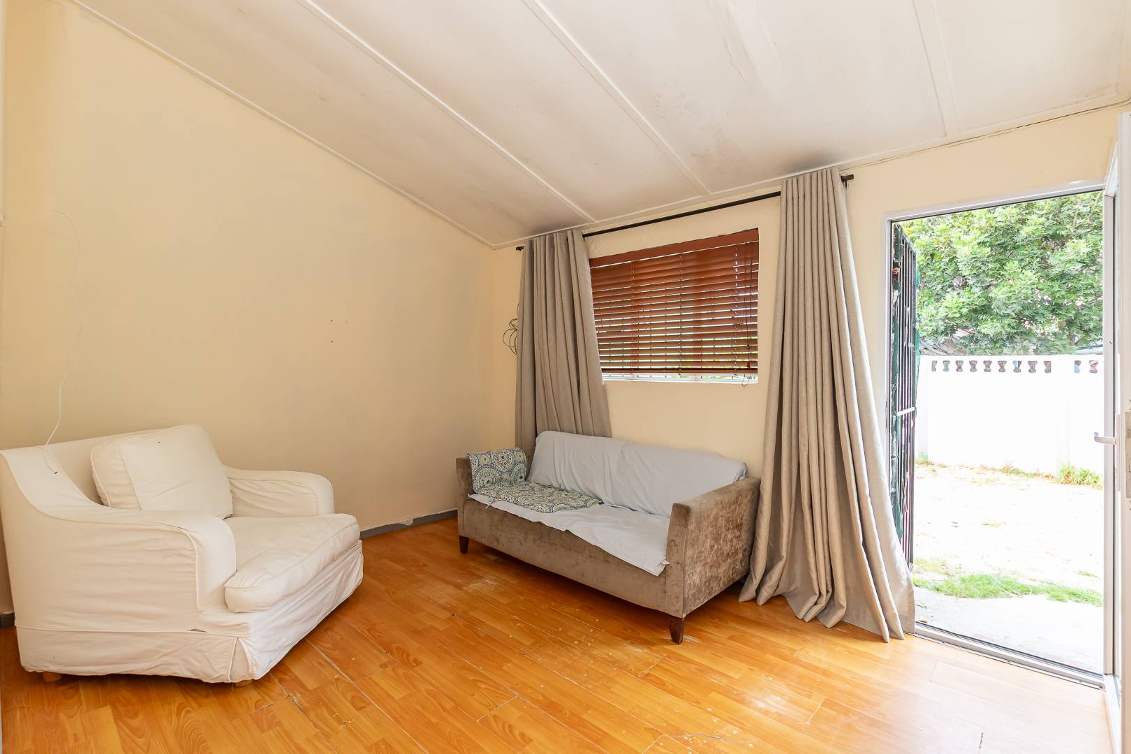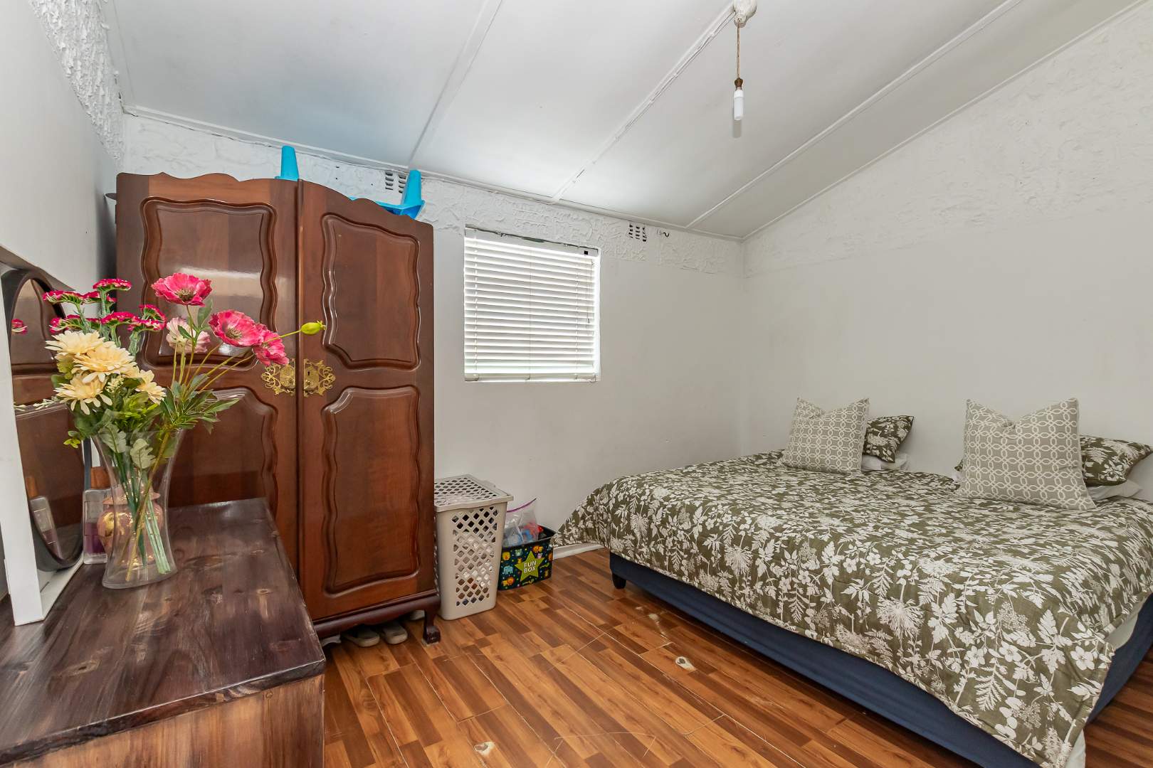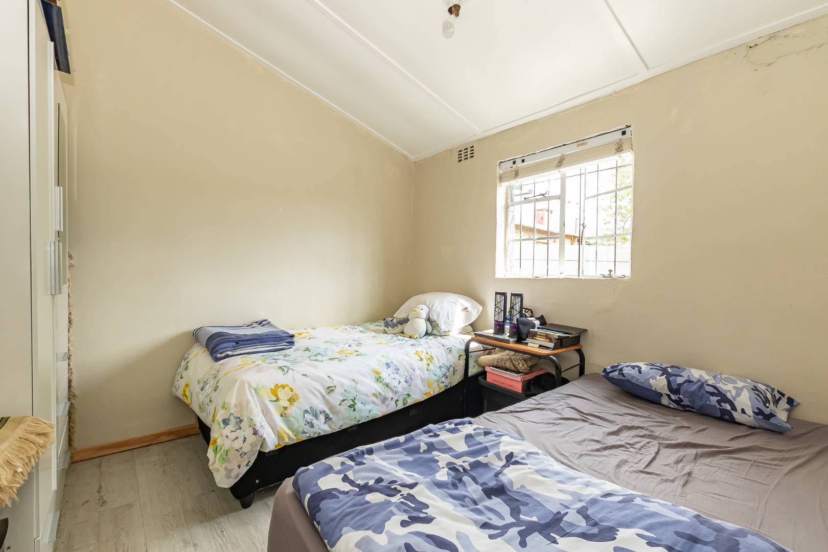Upon entering, you are welcomed into a lounge and dining area. The spacious main bedroom offers great potential for the installation of built-in cupboards, while the second bedroom is currently configured as a double room