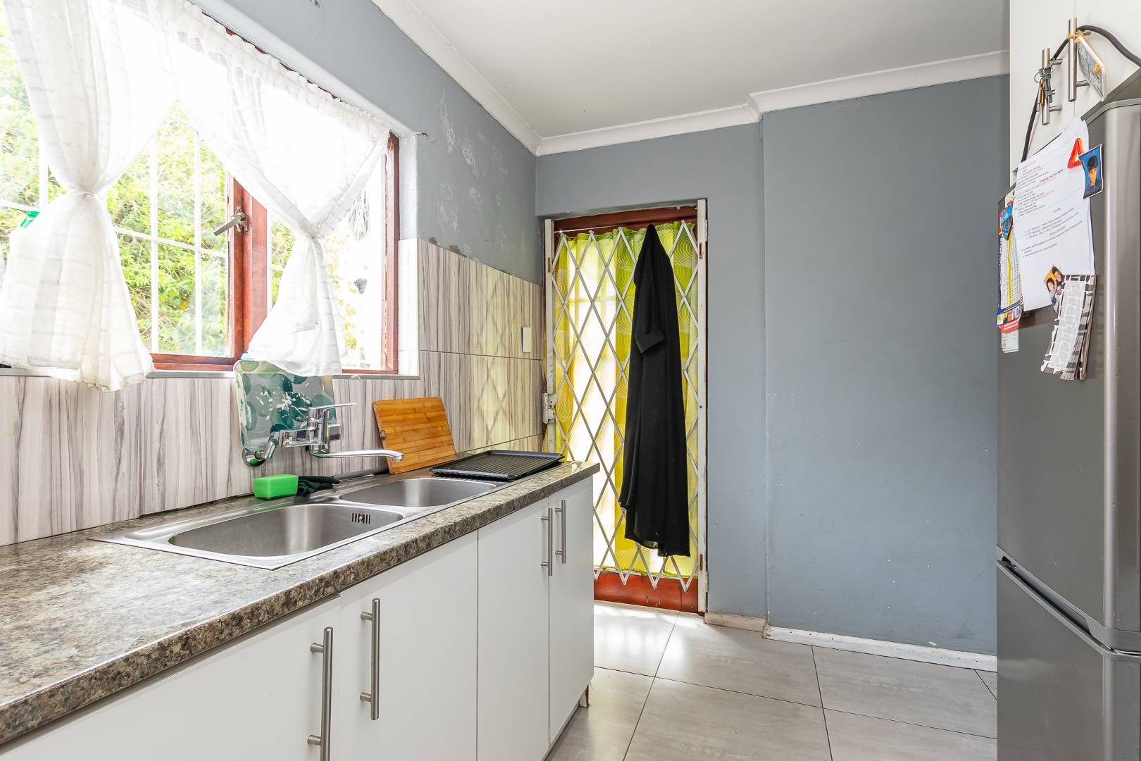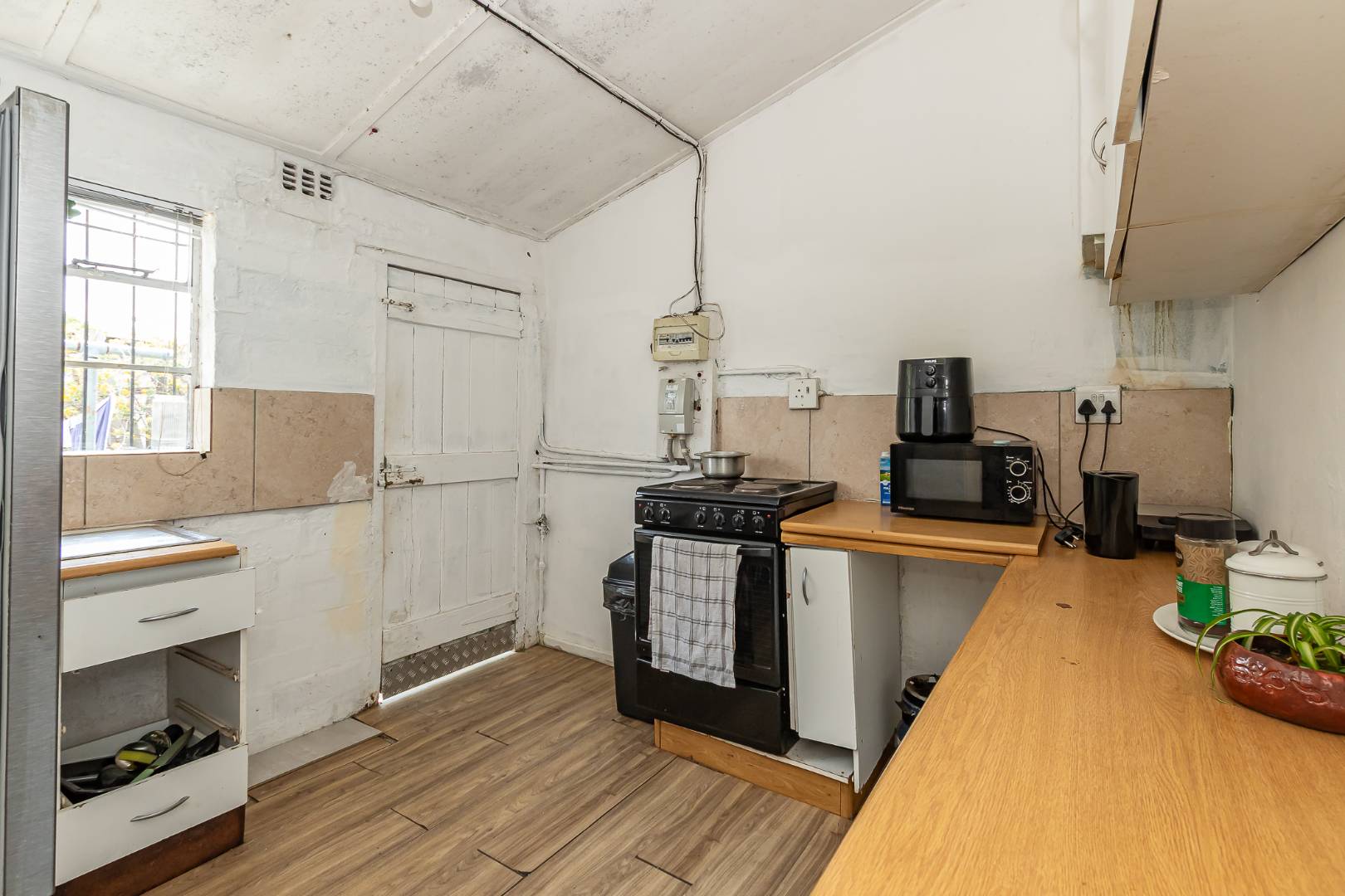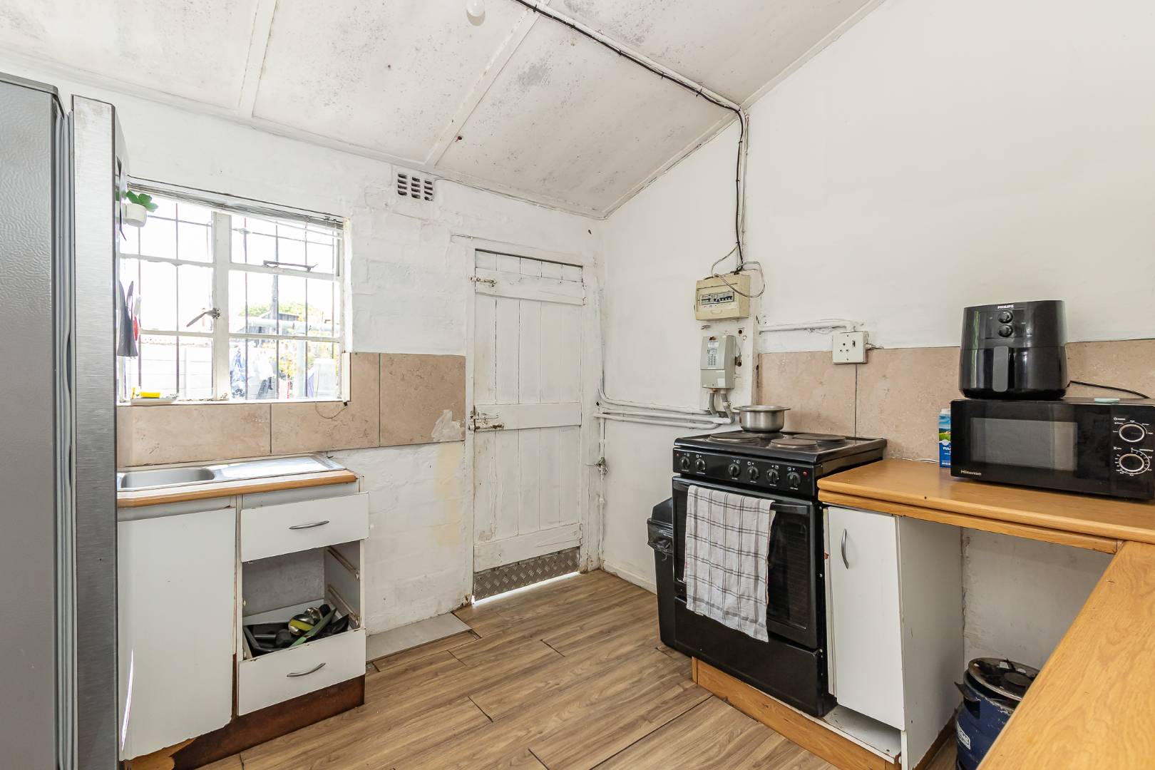 The kitchen is well-equipped with ample cupboard space for all your storage needs, accommodates a single fridge, and features a convenient side door leading to the backyard garden area—perfect for outdoor enjoyment.