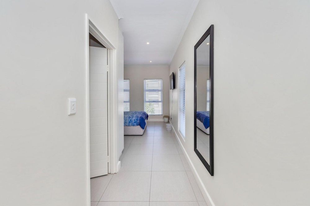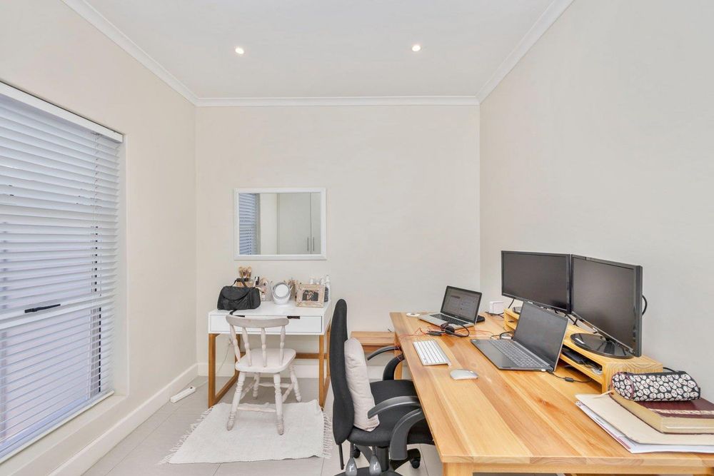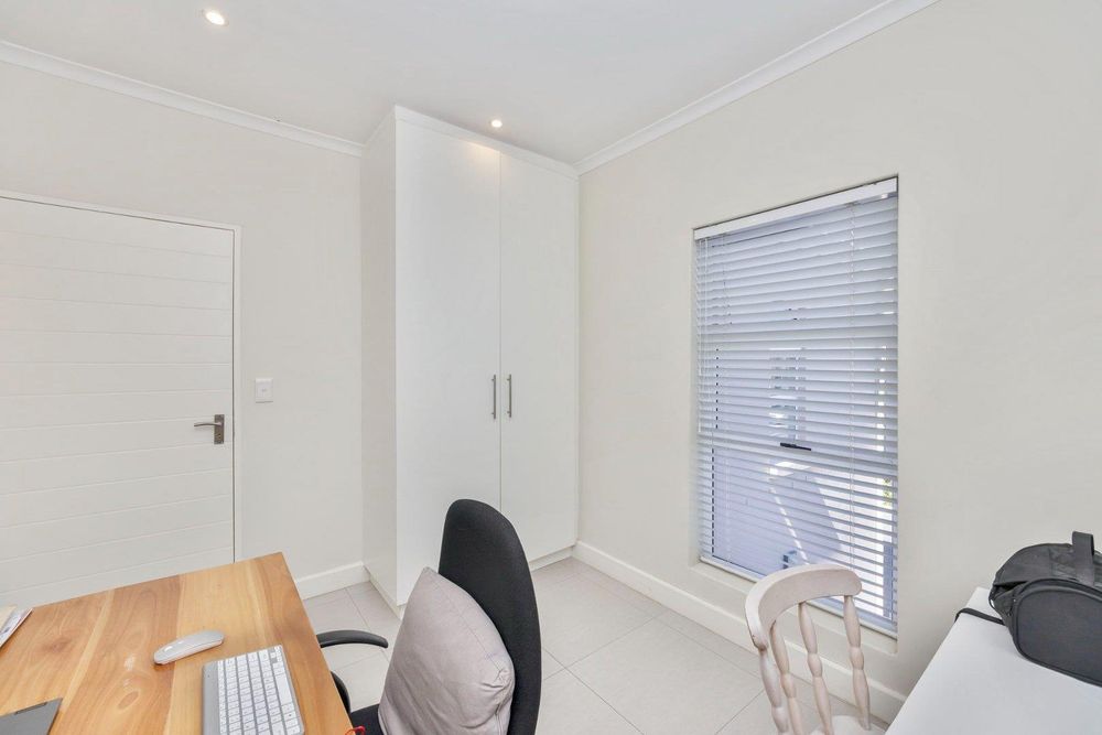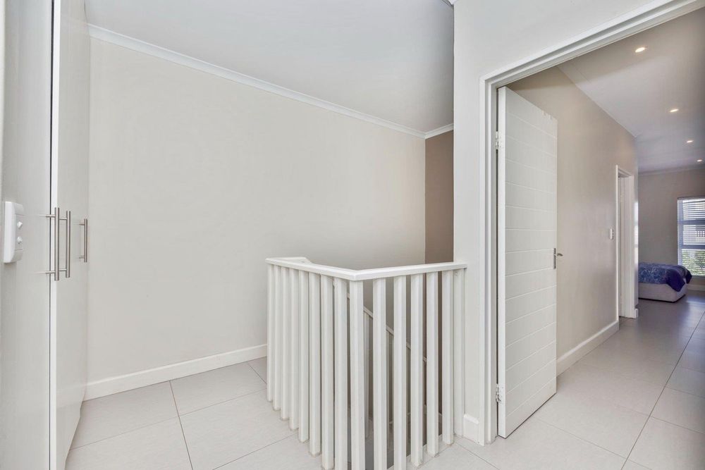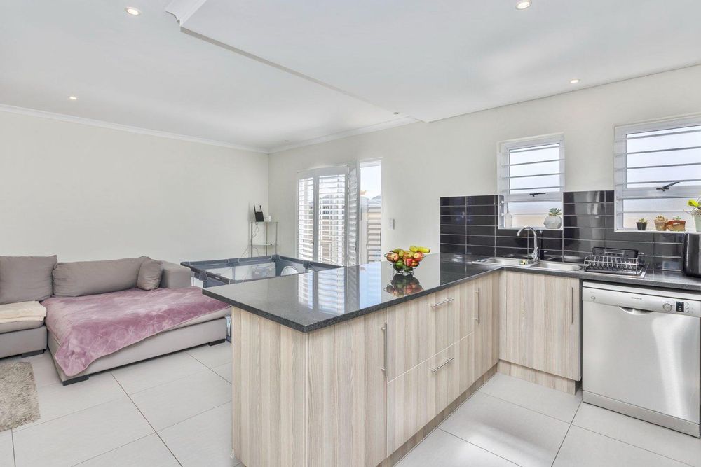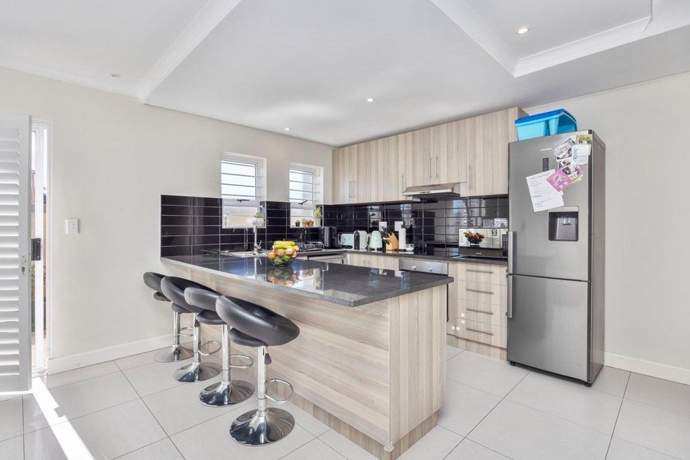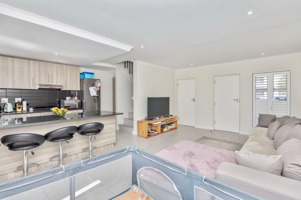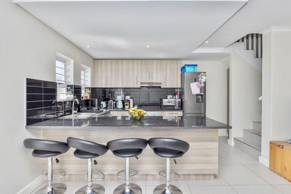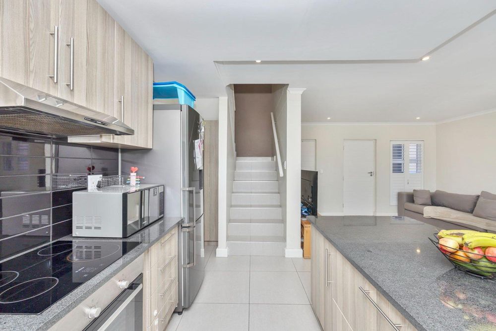 Beautifully finished, this open concept living designed home is move in ready. Enter the spacious lounge, which leads to the back private garden awaiting to be turned to your own oasis. The kitchen is fully fit with sufficient granite counter space, electric stove and under counter oven. Upstairs you'll find three spacious bedrooms, each tiled and with built-in cupboards. The full bathroom has a bath and shower separate. The main bedroom is ensuite with a shower only. This property has 1 parking bay and 1 garage which has a water connection for laundry.
