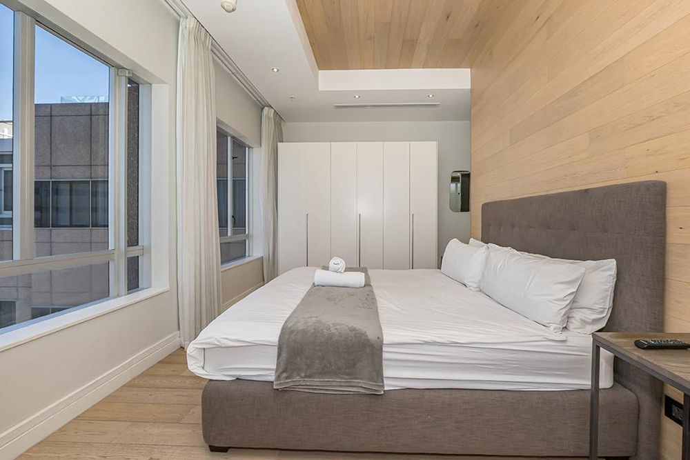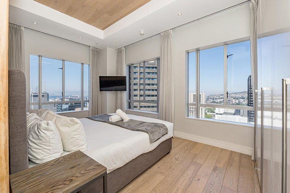 Situated in a prime city location, the building is just steps away from Cape Town’s commercial and leisure centers, moments from the CTICC, the V&A Waterfront, Bree Street, and De Waterkant's award-winning restaurants and wine selections. The environment is designed for contemporary urban living, merging residential comfort with a refined corporate/hotel ambiance: featuring a professional front desk and concierge, inviting lobby areas, business/meeting spaces, and convenient on-site dining. Optional hotel-style services such as housekeeping and linen changes (available by arrangement) facilitate both effortless living and effective short-term rental operations, boosting occupancy, enhancing guest experiences, and increasing income potential.