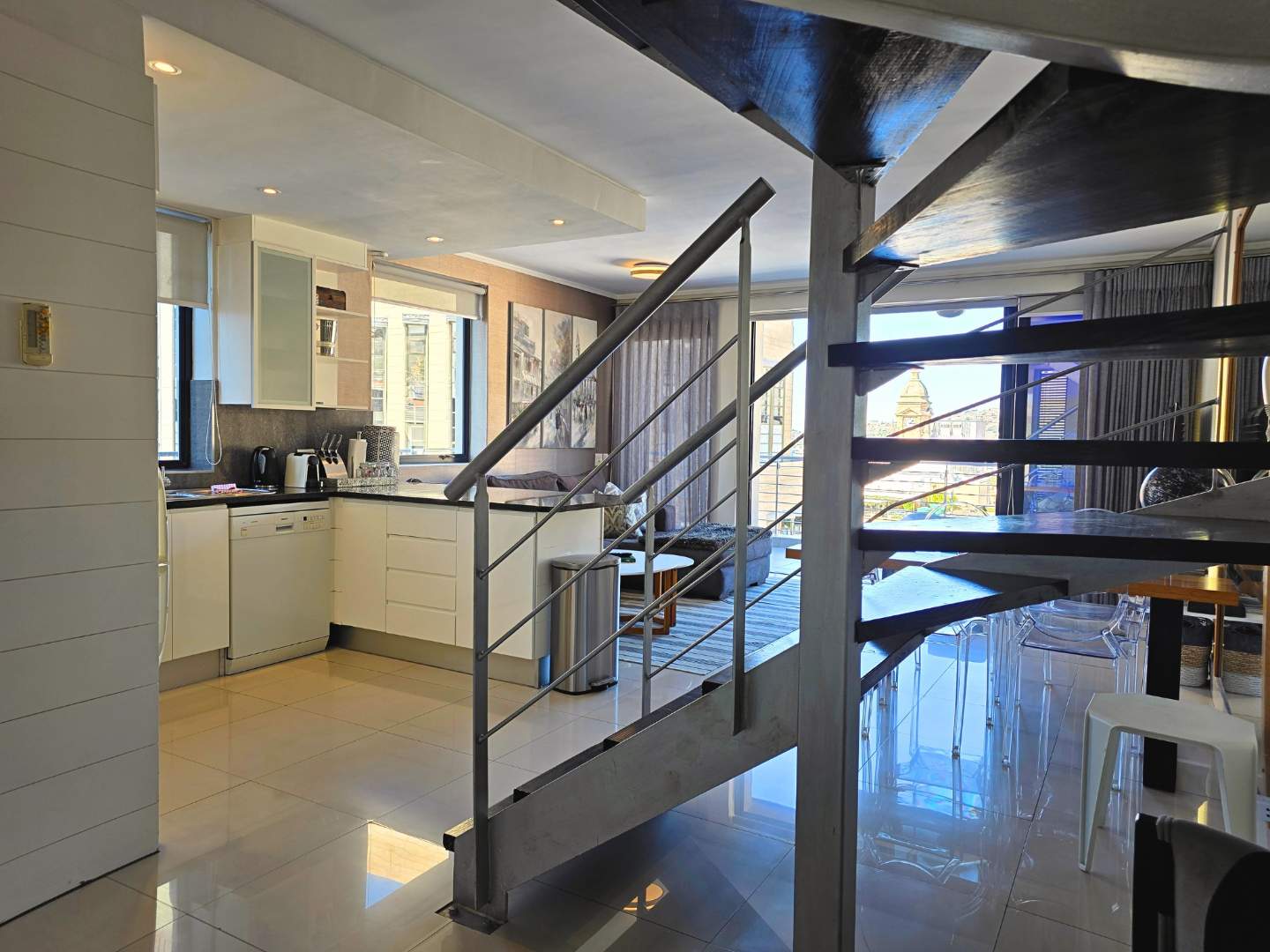 High above the CBD, this double-storey corner penthouse offers a rare combination of space, natural light and uninterrupted views of Table Mountain and the city skyline. Framed by wraparound balconies, the apartment captures the best of Cape Town living from every angle.