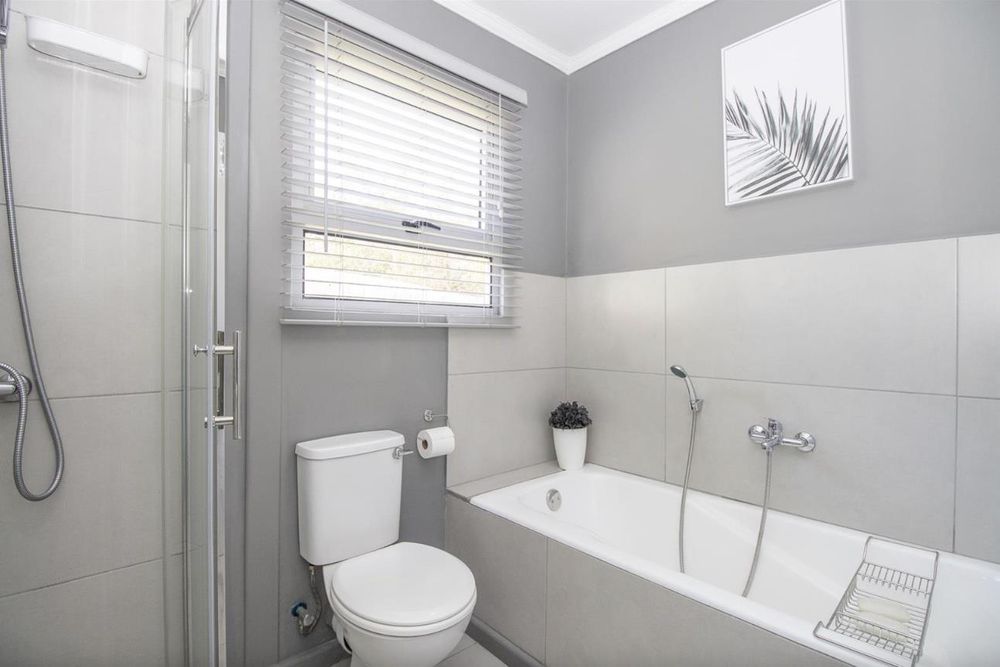Kitchen is fitted with a gas hob and electric oven. Prepaid electricity and prepaid water make it the ideal rental. Solar heated geyser.