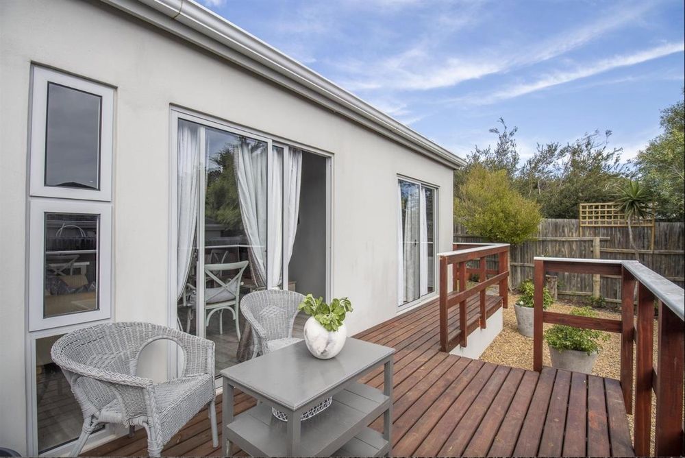 Enter into the open plan living room and kitchen, dining area is modern and light tiled throughout. Doors open up to a lovely entertainment deck elevated over the immaculate indigenous gardens.