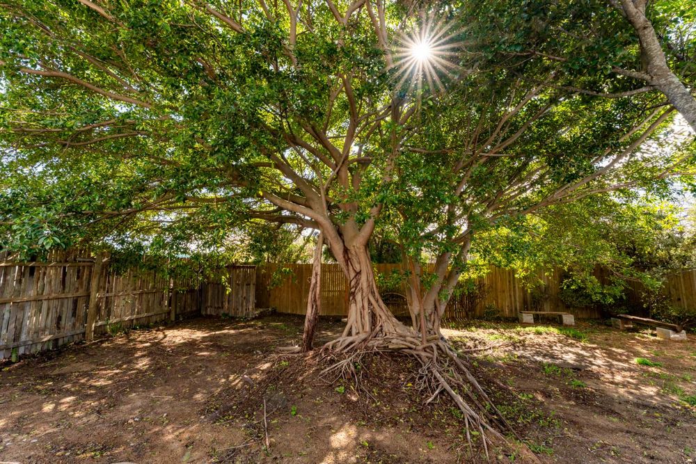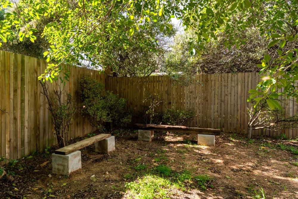 Tucked away in a serene corner of nature, this quaint cottage exudes charm and quiet simplicity. Surrounded by a lush garden of mature trees and thriving green foliage, the home feels like a secret hidden gem.