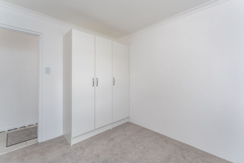 Sunny 2nd bedroom also boasts new carpeting and cupboards.