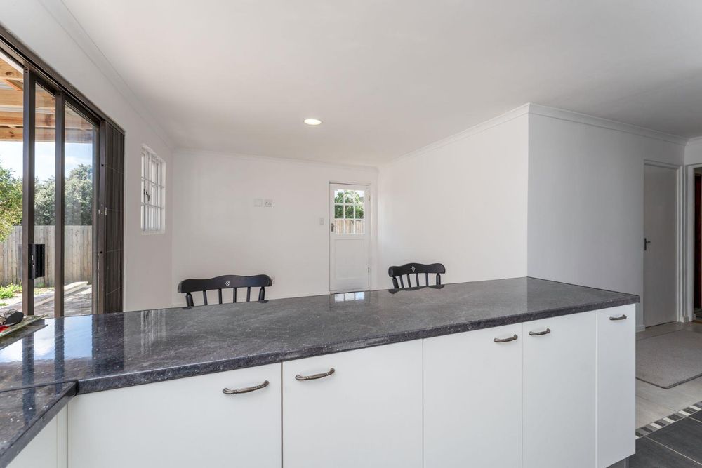 An open plan modern kitchen with breakfast seating for 2 to 4. Excellent counter space for the enthusiastic chef, prep & cooking while entertaining. Plumbed for a washing machine or dishwasher.
