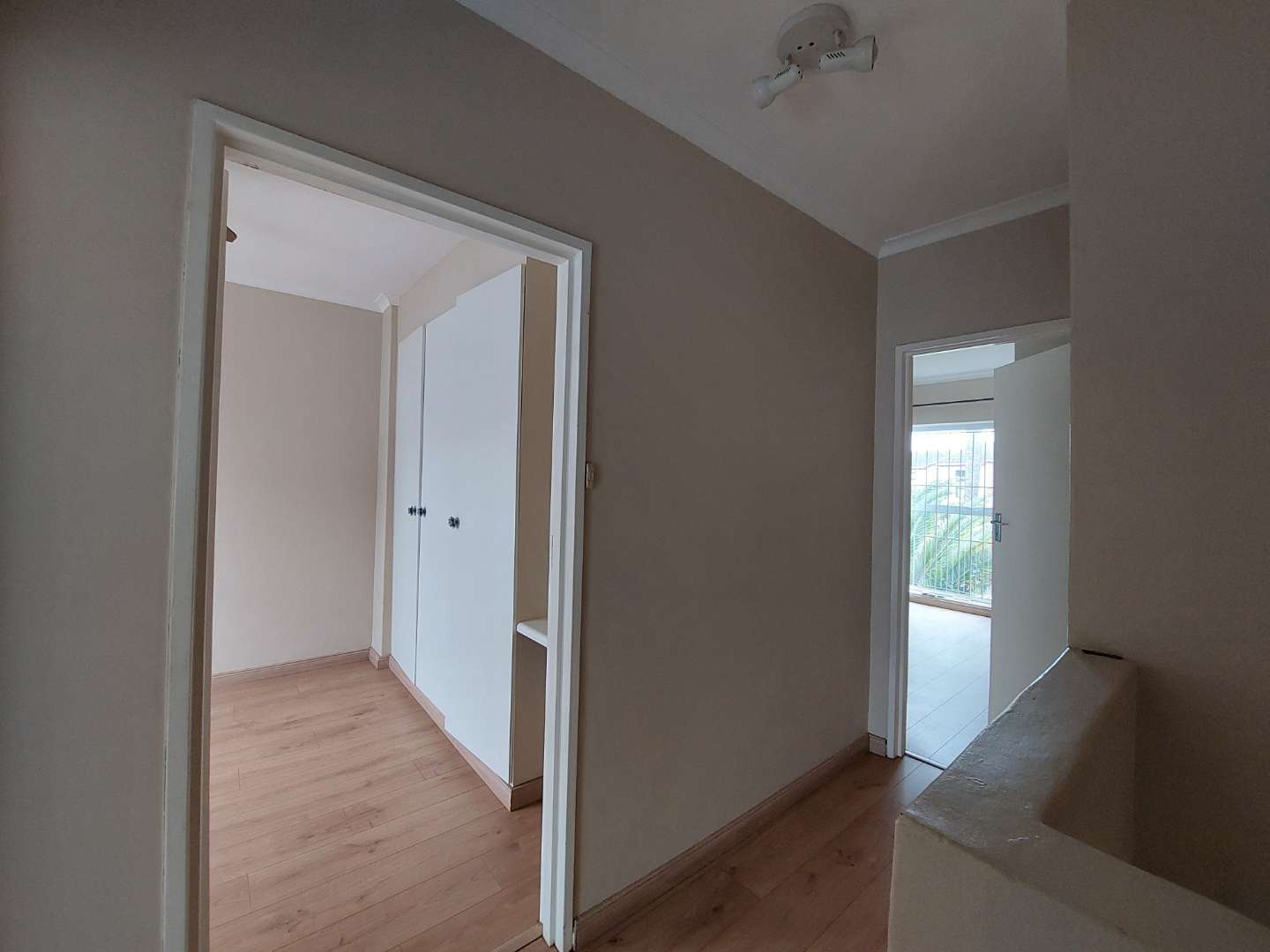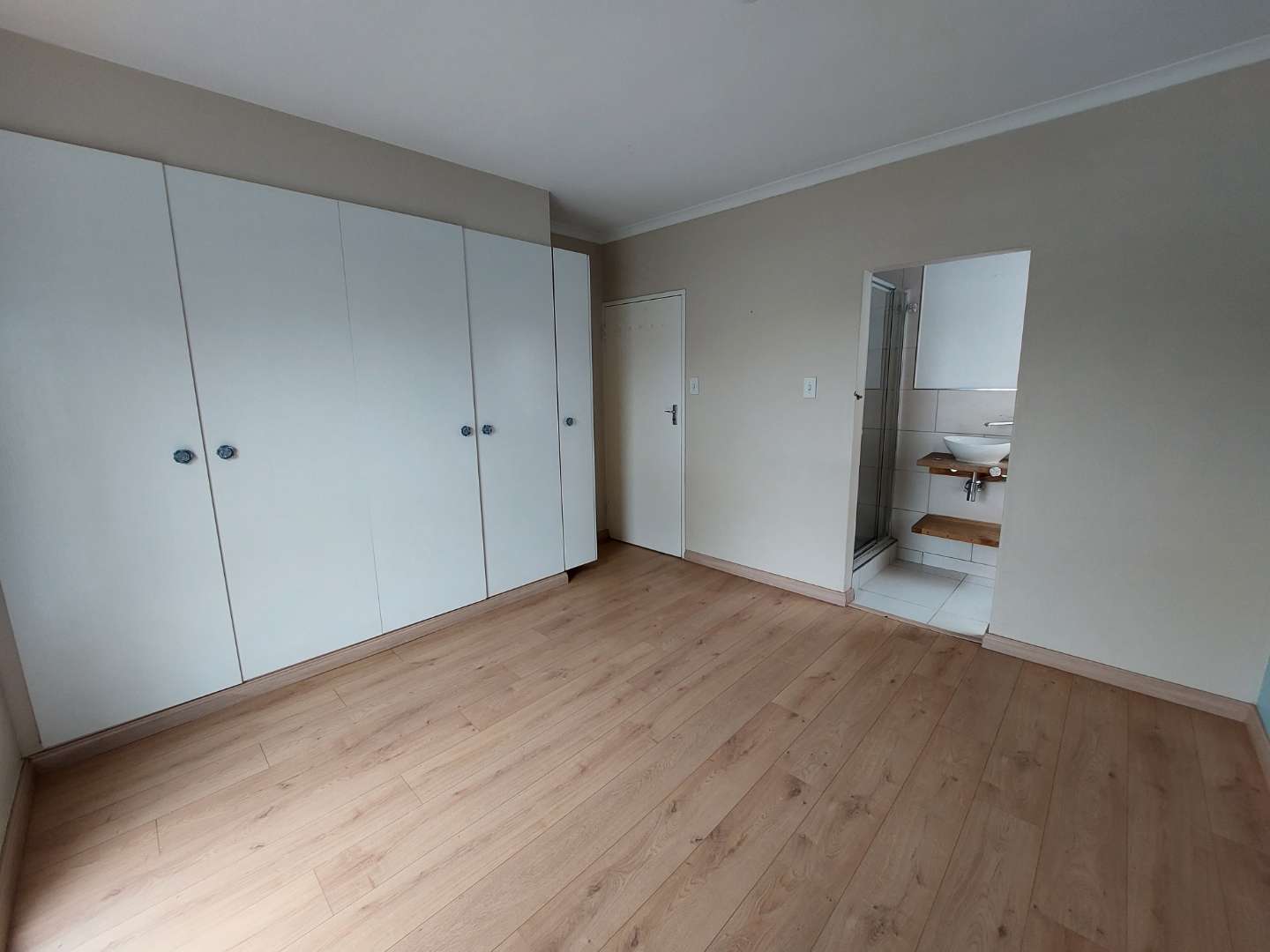 Walking upstairs you will find 3 bedrooms. All bedrooms have built-in cupboards and laminated flooring. The main bedroom stands out, with large north facing windows and en-suite fitted with a shower.