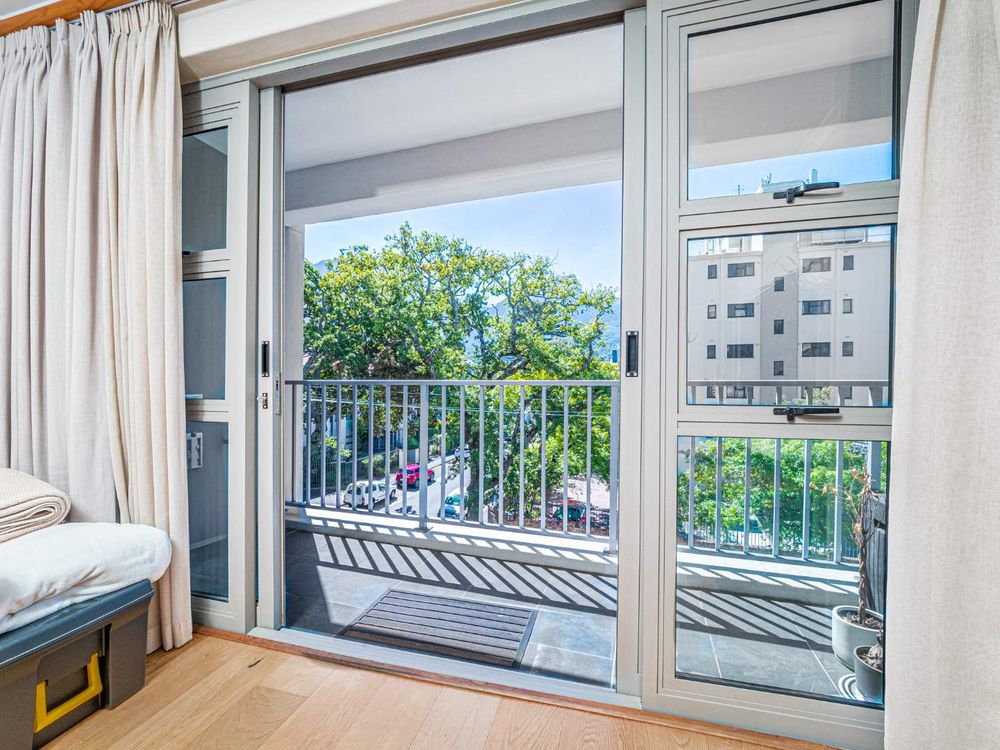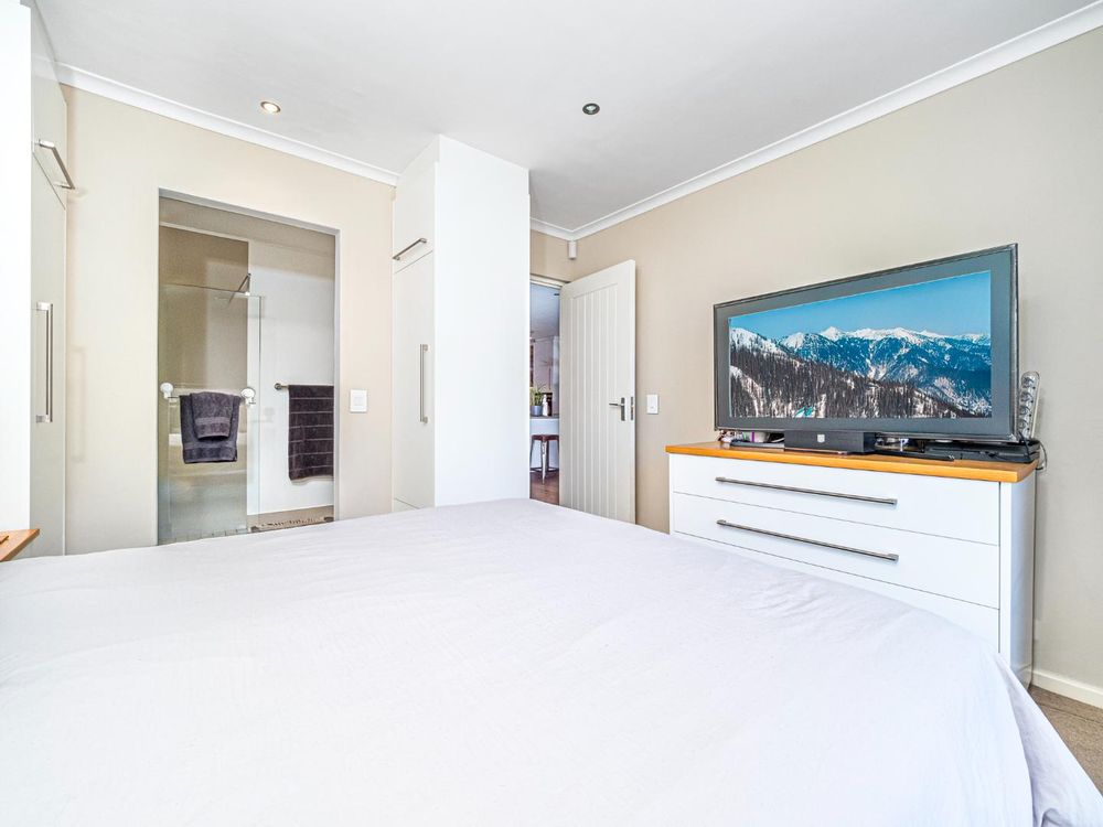 Step onto the private balcony and take in the breathtaking views of Table Mountain and the lush greenery of the surrounding area. The main bedroom is a true retreat, featuring mountain views, built-in cupboards, an en-suite bathroom, and direct balcony access. The additional bedroom is generously sized, designed with comfort and sophistication in mind while also featuring an en-suite bathroom.