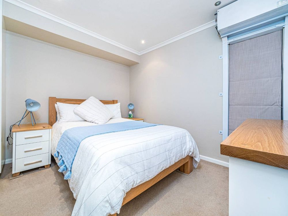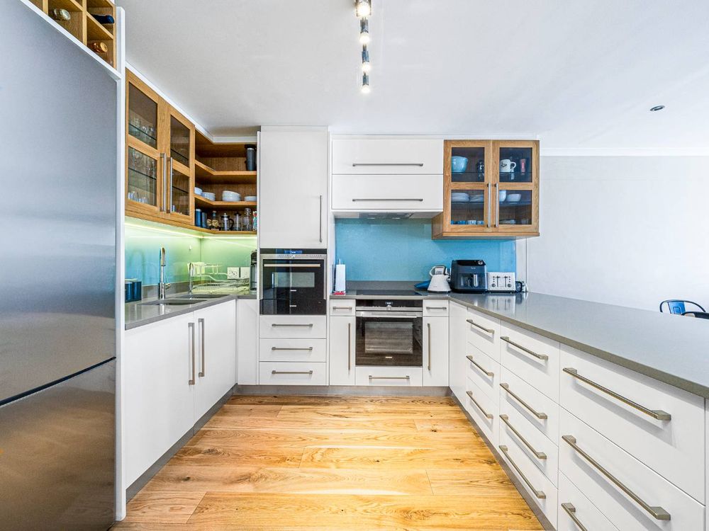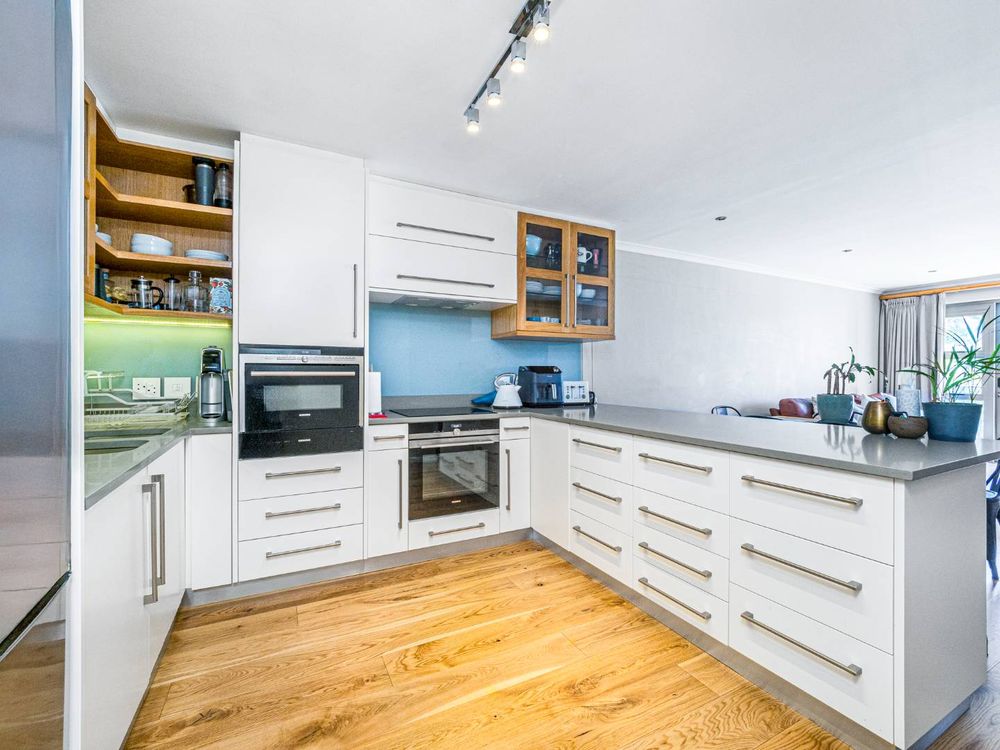 Nestled in the prestigious suburb of Claremont Upper, this exquisite two-bedroom apartment offers a perfect blend of modern luxury and timeless elegance. Floor-to-ceiling windows flood the open-plan living space with natural light, highlighting the sleek finishes, engineered wood flooring, and high-end fittings throughout. The designer kitchen, complete with integrated Siemens appliances, marble countertops, and a spacious island, flows seamlessly into the dining and lounge areas. The entrance hall also features a guest loo.