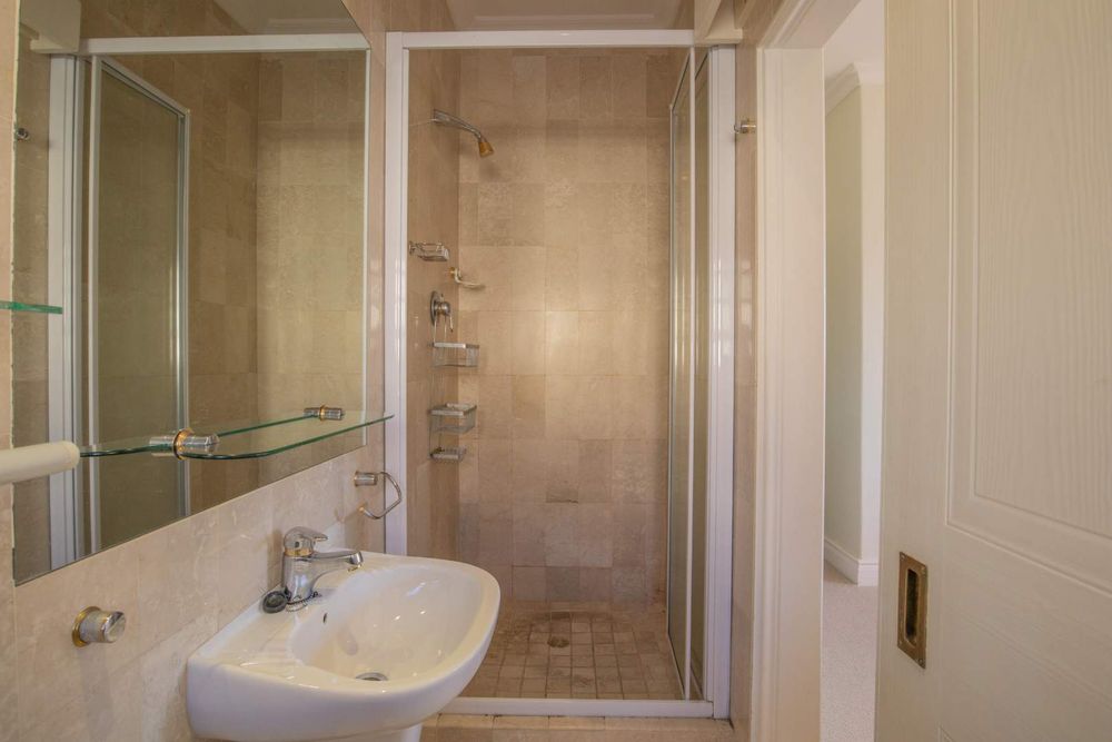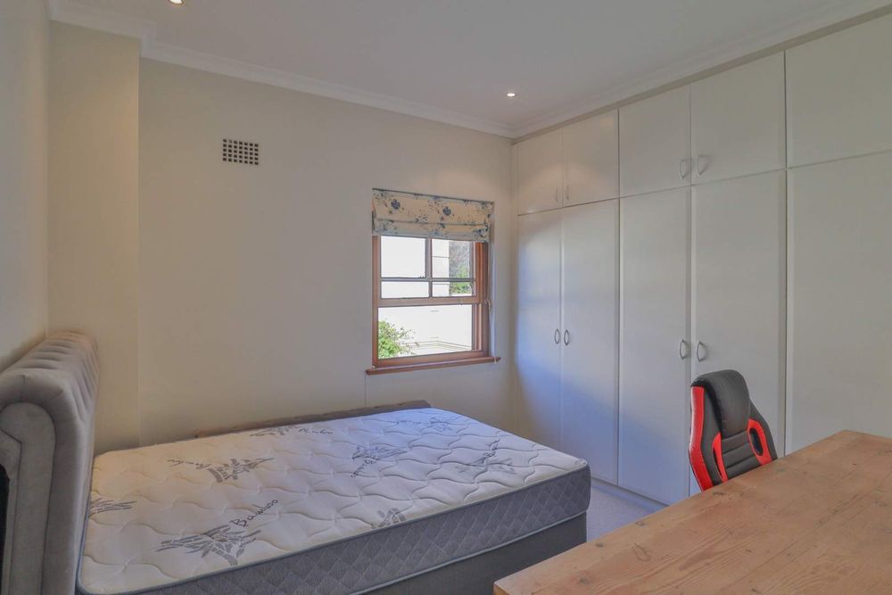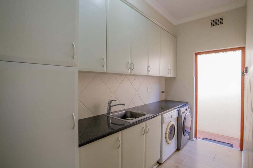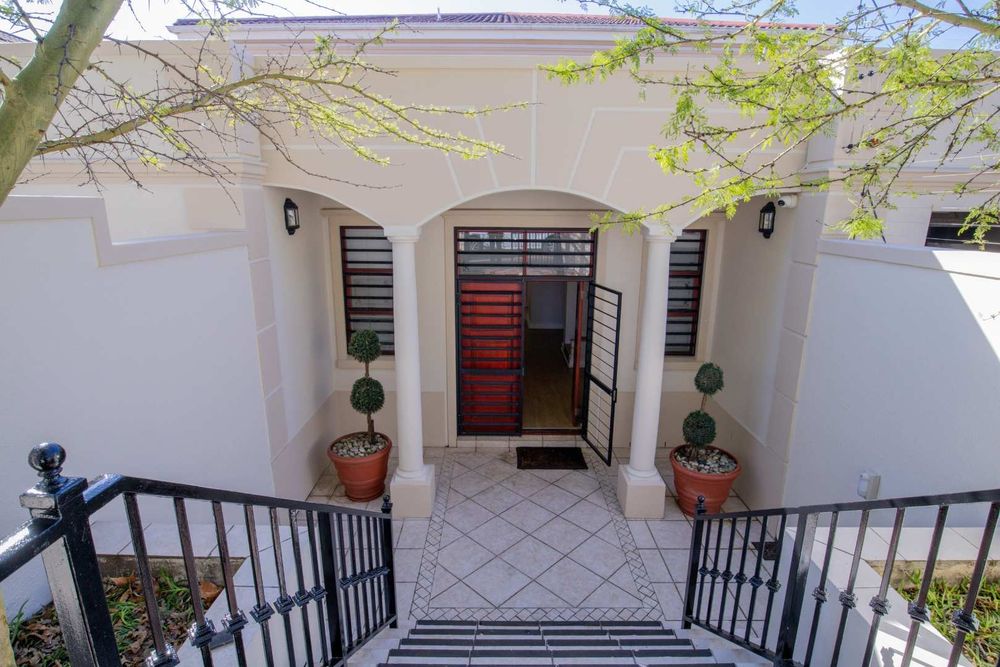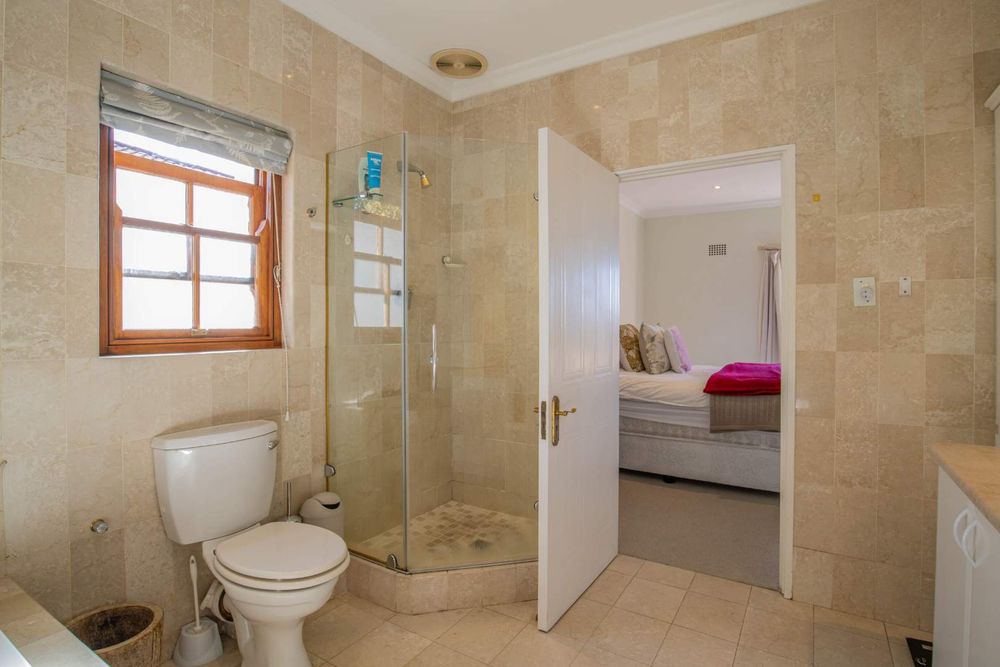 The ground floor also includes a separate study with ample built-in cabinetry, a guest cloakroom, and a generous storage room tucked beneath the staircase. Security is paramount with CCTV cameras, an alarm system, and electric fencing securing the property. The double automated garage includes additional built-in storage, while off-street parking can easily accommodate two to three additional vehicles. A wendy house provides convenient outdoor storage, and an external domestic suite with en-suite bathroom and built-in cupboards completes the lower level.