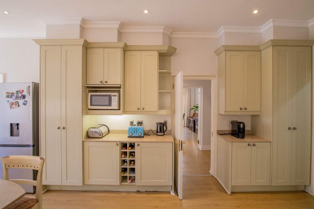 The kitchen offers both practicality and warmth, featuring an informal lounge and dining nook, breakfast bar, built-in eye-level oven, integrated dishwasher, and stove with extractor. A separate scullery and laundry provide additional space for appliances, keeping the living areas neat and functional. Underfloor heating adds to the comfort of the downstairs living spaces.