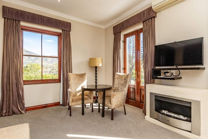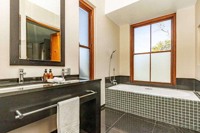 Entertain guests and unwind in serene Constantia, overlooking historic mountains, with a private wine cellar for tastings—boutique guest residence with 14 bedrooms, 13 bathrooms and three garages.