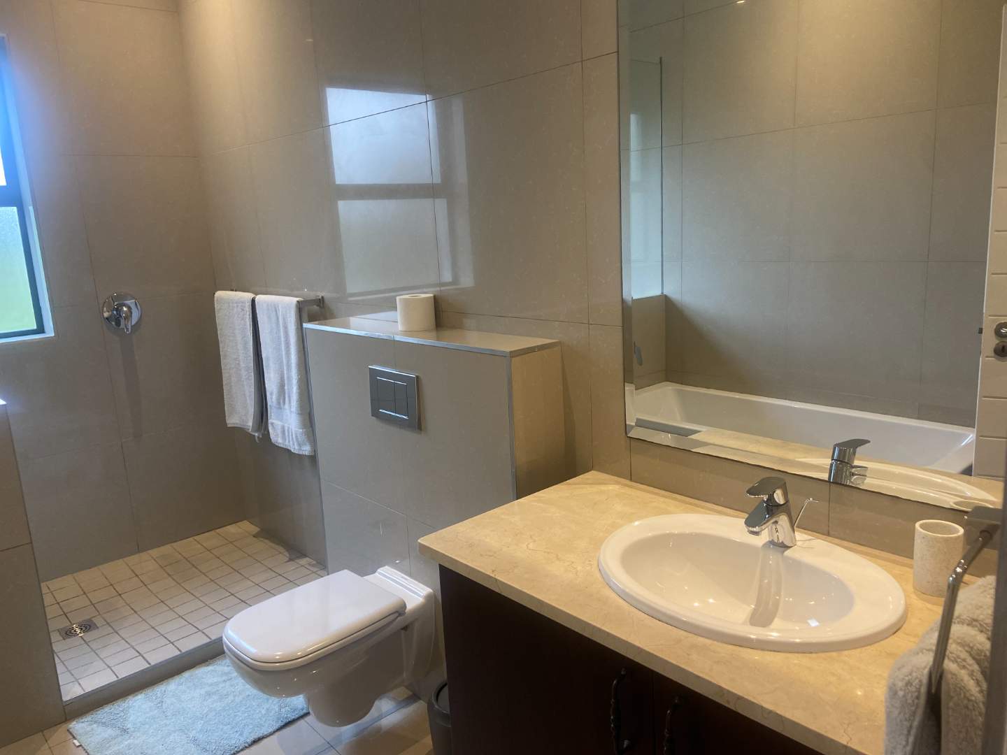 One family bathroom with both shower and bath.