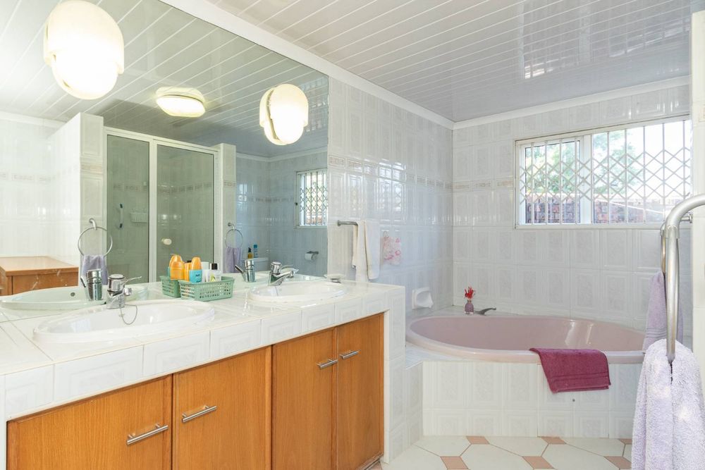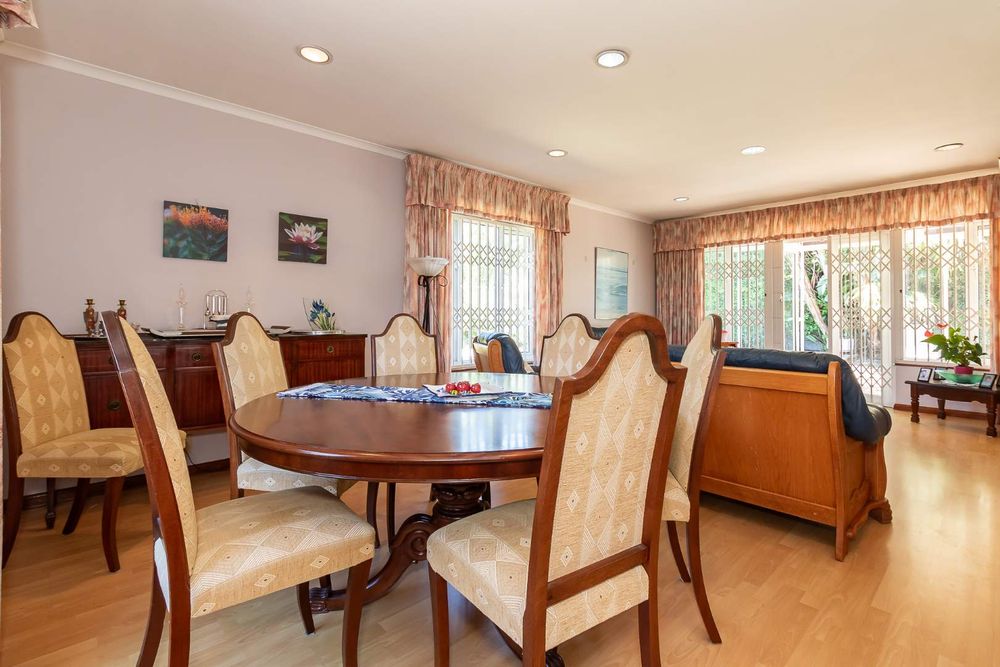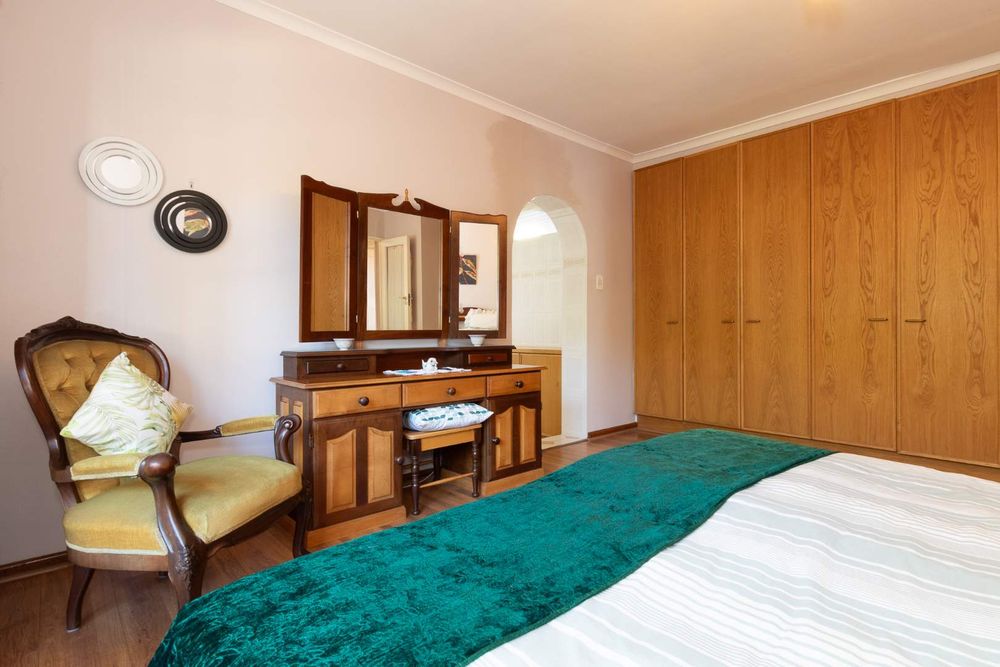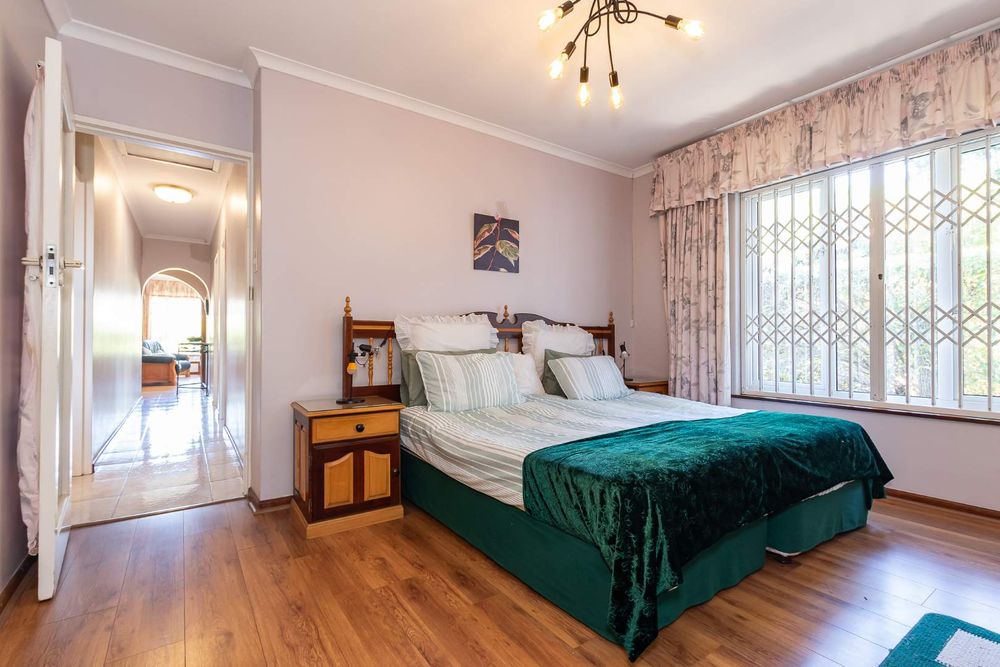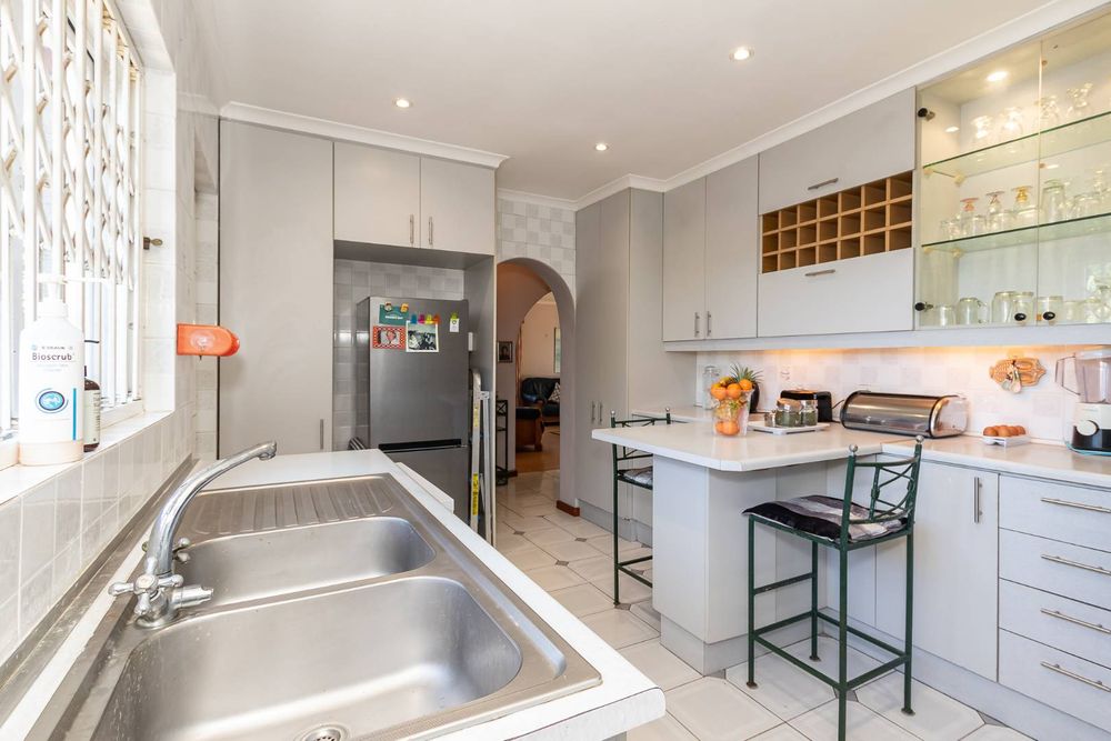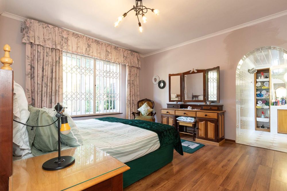 Outdoors, you’ll enjoy a sparkling pool and mature hedges that provide excellent privacy for summer relaxation. The double garage offers exciting potential for conversion into a flatlet, especially convenient given the additional covered carport space and a separate storeroom.