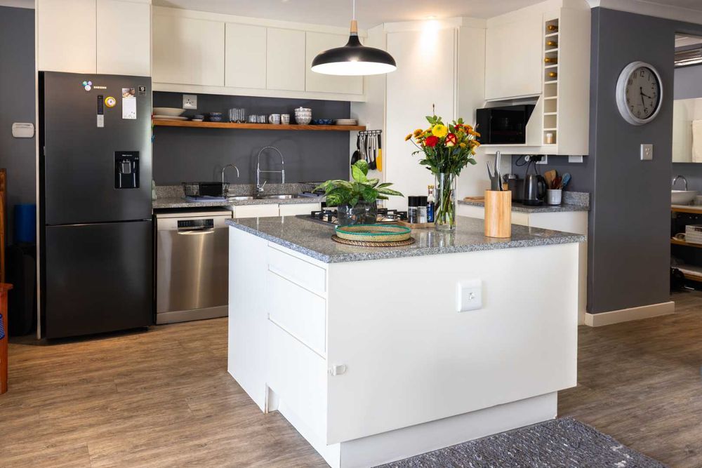 Step into a light-filled open-plan living space, where the stylish kitchen, lounge, and dining area flow effortlessly together. The kitchen is thoughtfully designed with modern finishes, a central island, and a pantry cupboard, making it both functional and perfect for entertaining.