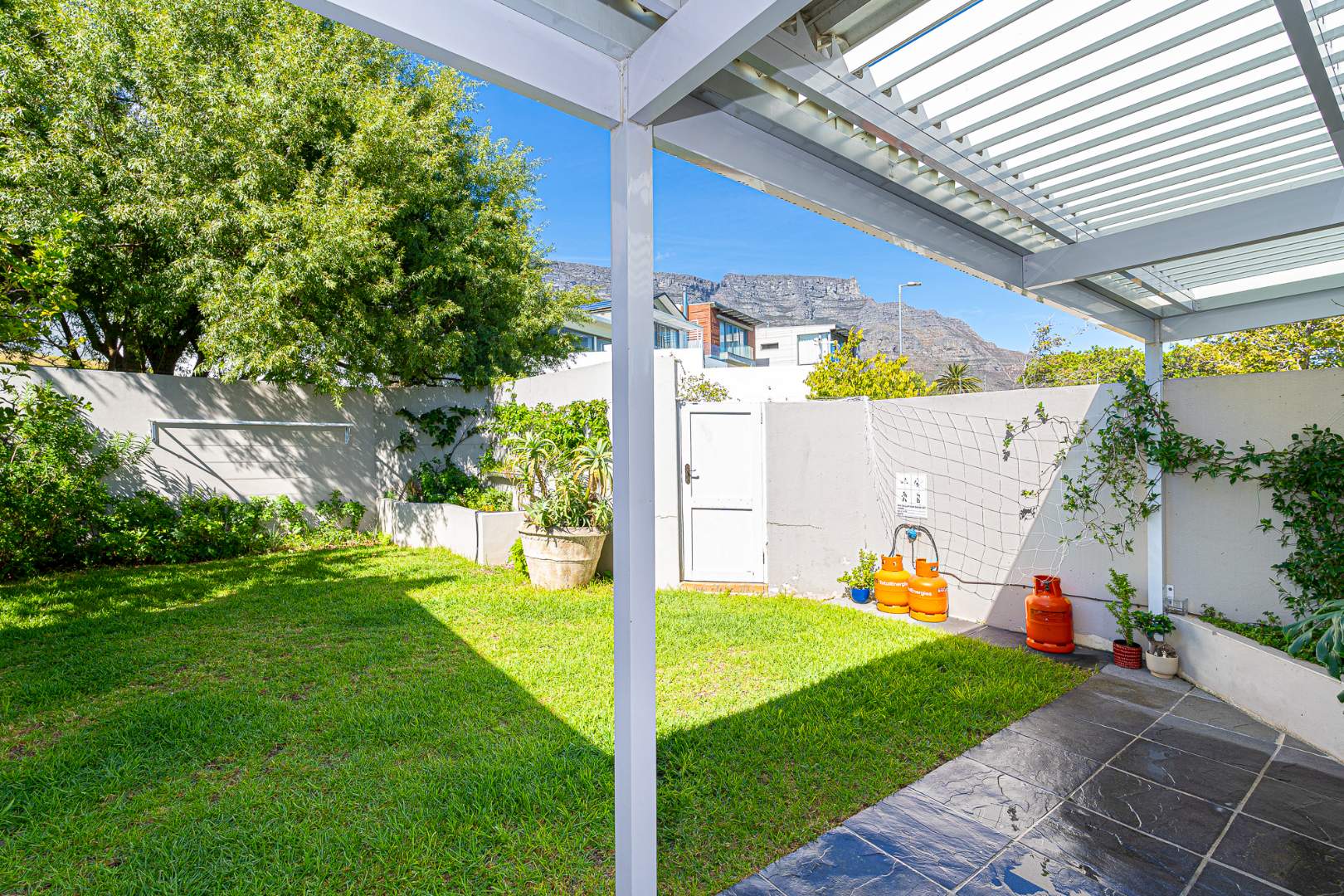 From the garden, take in the breathtaking backdrop of Devil’s Peak mountain, while the front of the home offers views toward the City Bowl, a rare combination that adds to the property’s appeal.