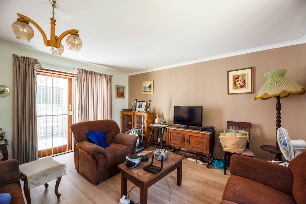 The spacious lounge, featuring elegant laminated flooring, is an inviting area for relaxation and family gatherings. From here, step out onto the charming patio, ideal for enjoying the outdoors in privacy.