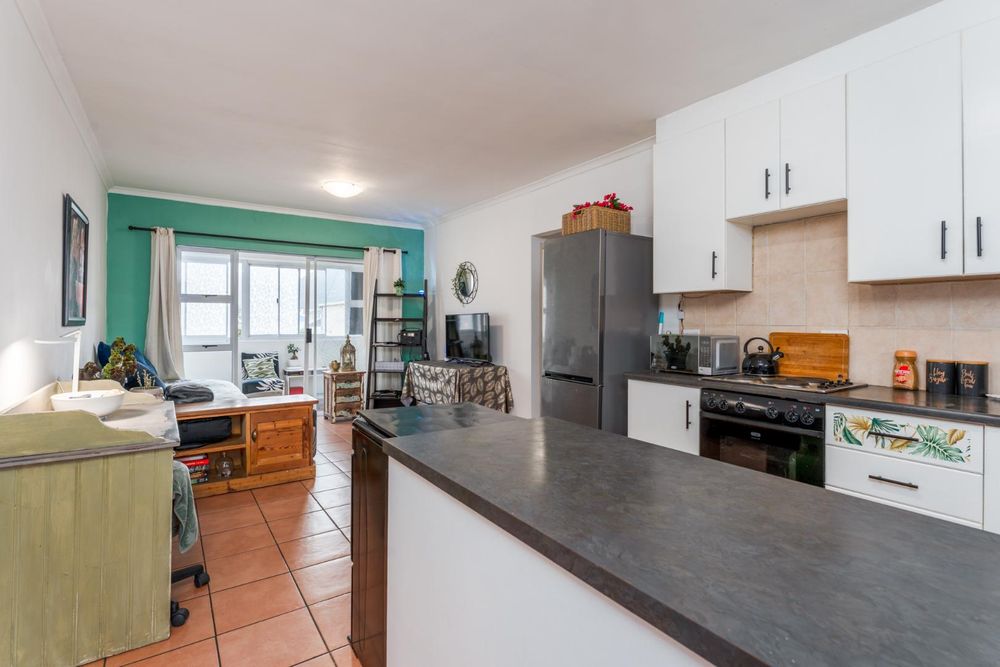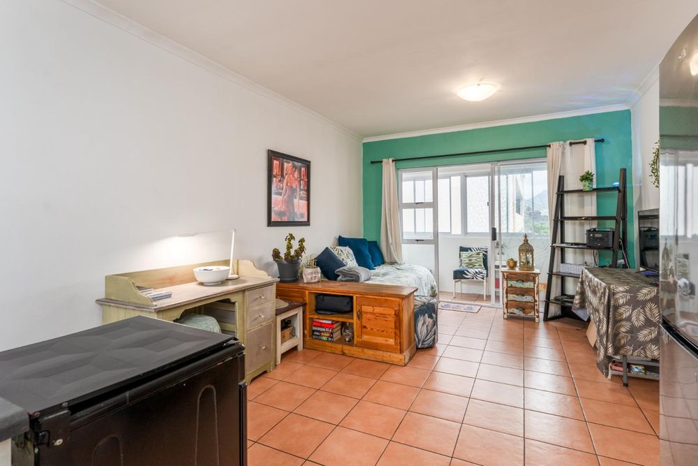 The open plan living room and kitchen is spacious with an enclosed balcony. The balcony has views of the Clovelly mountains. The flat is tiled throughout. Kitchen with electric hob and oven. Plenty of cupboards and plumbed for a washing machine.