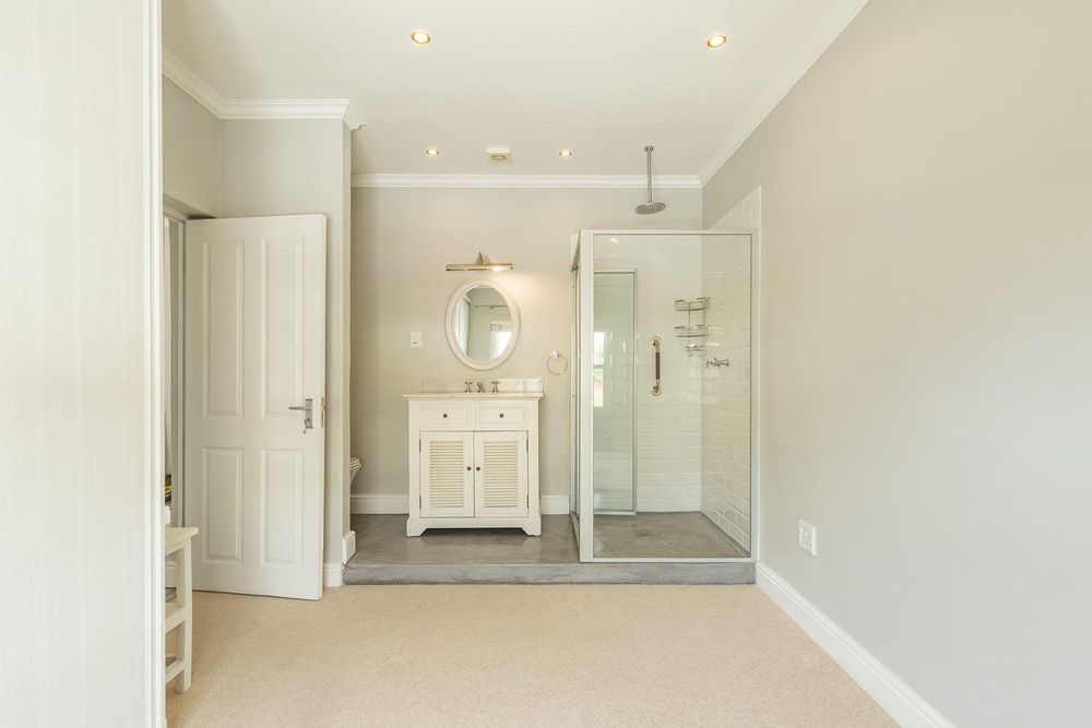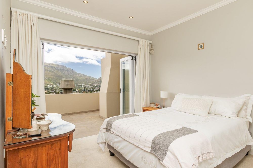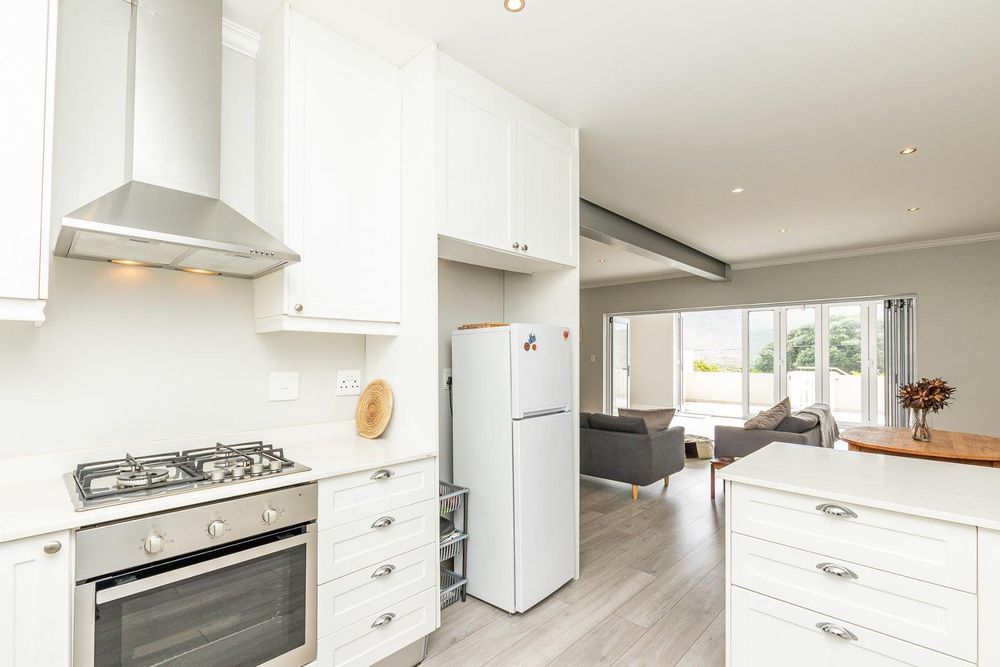 The home features 3 bedrooms, as well as 3 bathrooms, all being en suite. The bedrooms are situated upstairs of the unit. The main bedroom has stacking doors leading out onto a large balcony with beautiful mountain and sea views. The living area is situated on the main level of the property which has an enclosed built-in braai area for entertainment and an open plan living area, lounge, dining room, and kitchen with stylish finishes and space for 2 appliances. In addition, there is a separate guest bathroom and a sizable garden with direct access to the road. A storeroom as well as a Jojo tank. Double automated garage and extra parking. The sectional title has automated gates and only consists of 2 units.