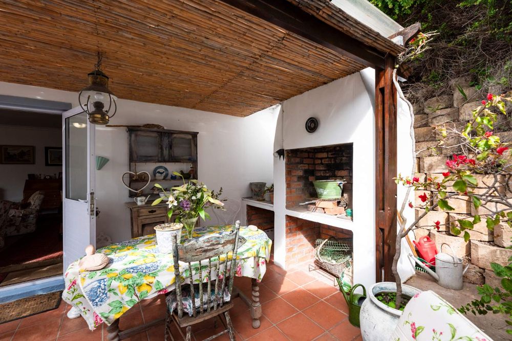 Covered braai area. A covered patio space/breakfast or coffee area connects the home to the single extra-length garage, which includes a tiled laundry area. This laundry space area is plumbed for both washing machine and tumble dryer. The property offers secure off street parking and includes a fully alarmed system with outside motion sensors for peace of mind. The gorgeous front garden enhances the home's appeal, providing a serene outdoor retreat. This delightful home perfectly blends comfort and security offering a lovely living experience on the Fish Hoek Hillside.