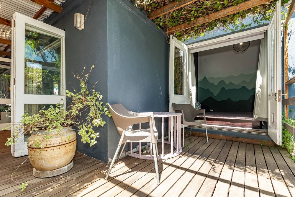 The main bedroom is like your own private sanctuary, with a built-in wood-burning fireplace, walk-through closet, and an en-suite bathroom as well as doors exiting onto a private courtyard.