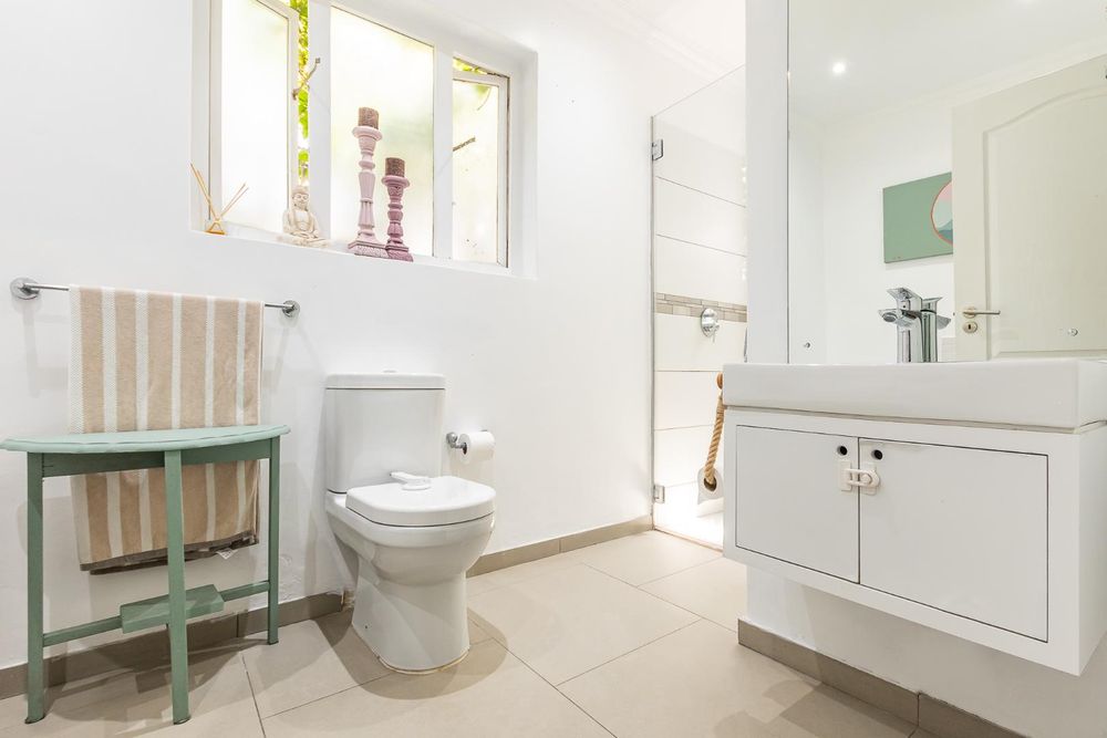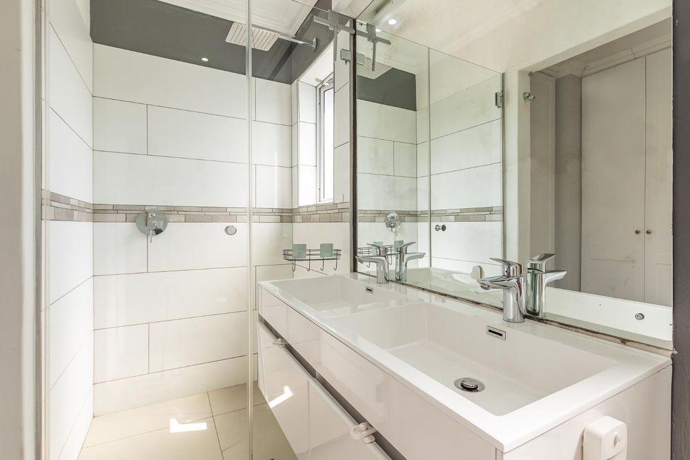 2 of the bedrooms share a well-sized bathroom with a basin, shower, and toilet.