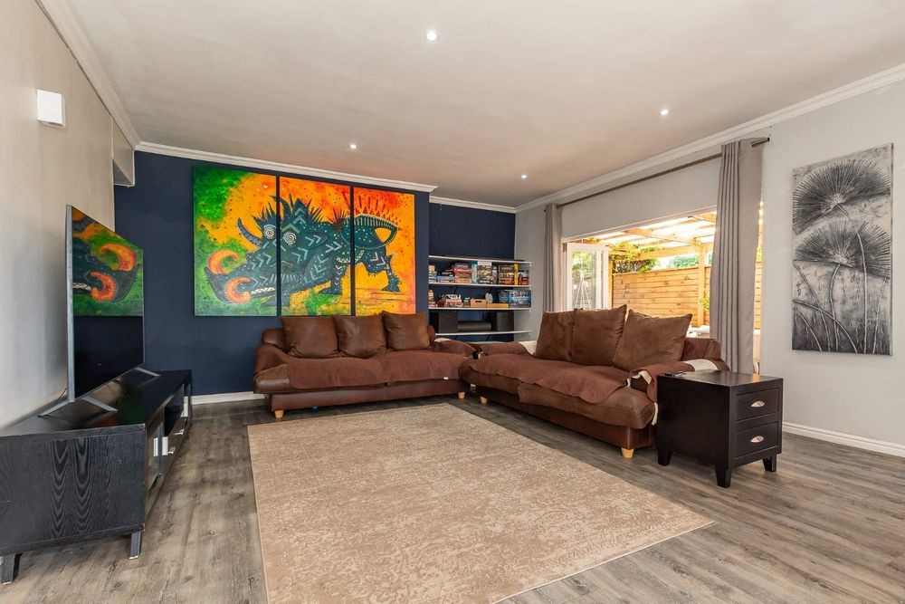 Double doors lead out onto an undercover patio and are well-equipped for entertainment.