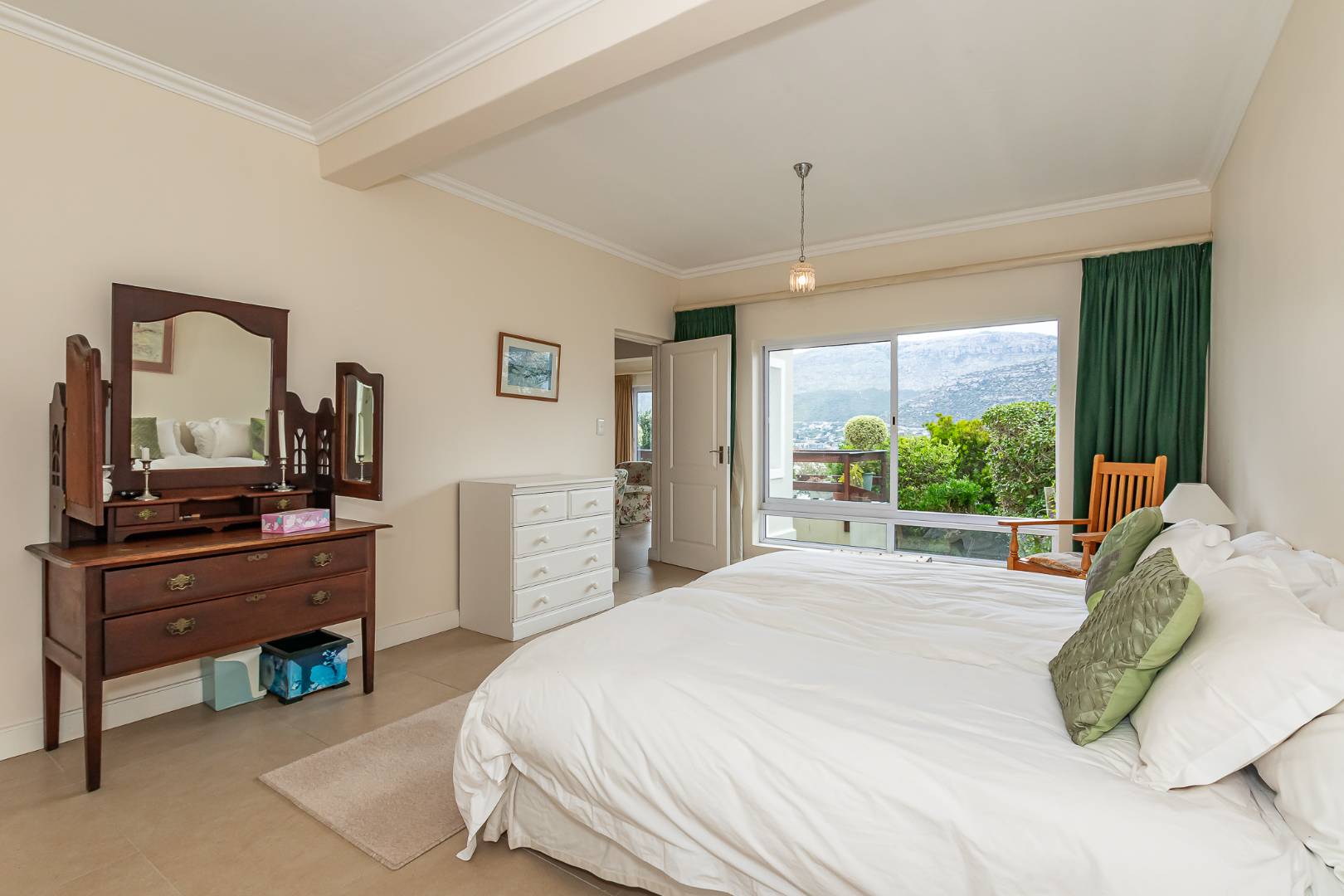 Ascending from the atrium, an upper-level retreat awaits — ideal as a private study or guest suite — complete with its own en-suite bathroom and commanding views of both sea and mountain.