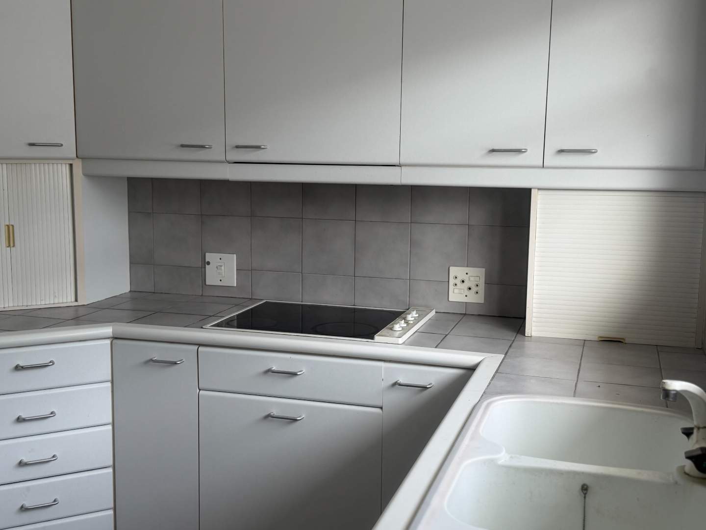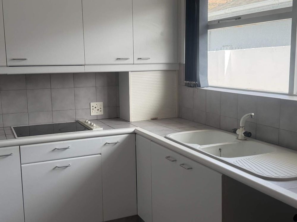Separate kitchen with plenty of cupboards, electrical hob, plumbed for washing machine or dish washer and a double sink.