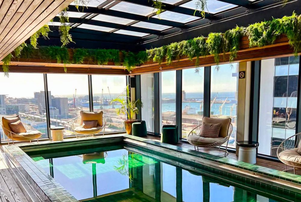 Enjoy the exclusive rooftop studio bar and indoor pool area, where panoramic views of the ocean, city, and iconic Table Mountain await you.
