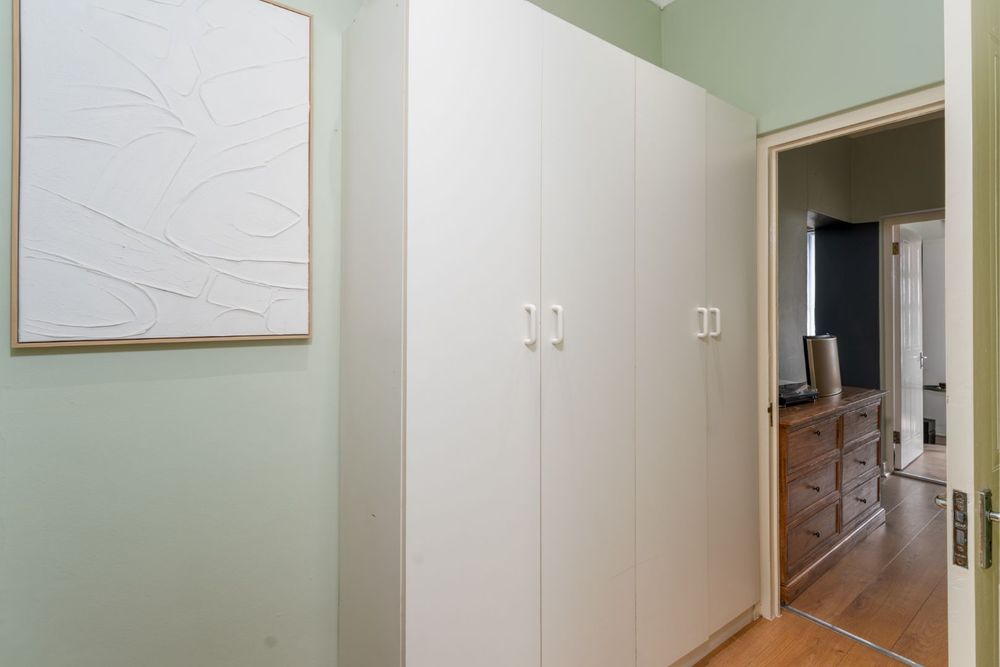 The main bedroom is spacious and light-filled, with ample built in cupboards and a full en suite bathroom. It has aluminium windows and doors that open out to a small entertainment area with a built-in braai, perfect for relaxed outdoor gatherings. From here, you can enjoy views of Table Mountain.
