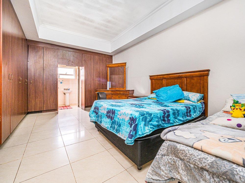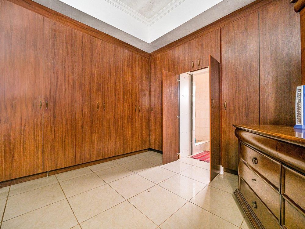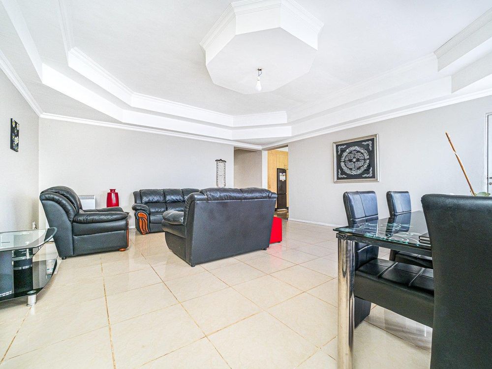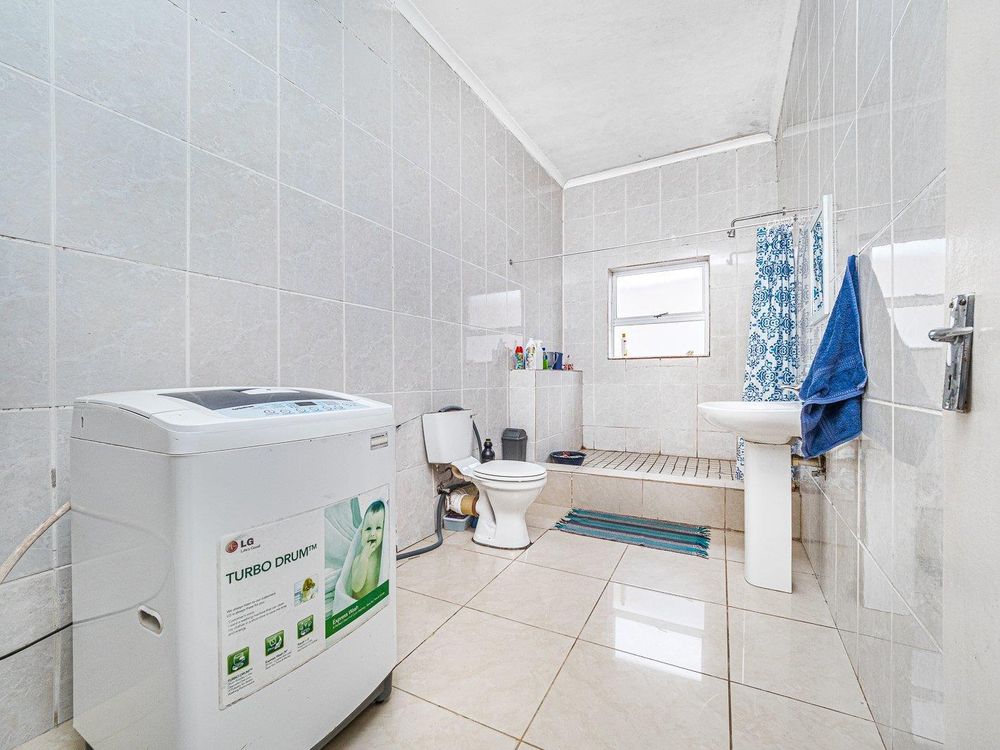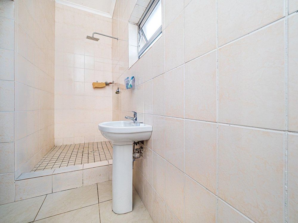 Three generously sized bedrooms are equipped with tilled flooring , built in cupboards and the main bedroom en-suite. The family bathroom has a massive shower , toilet, basin and plumbing for another appliances.